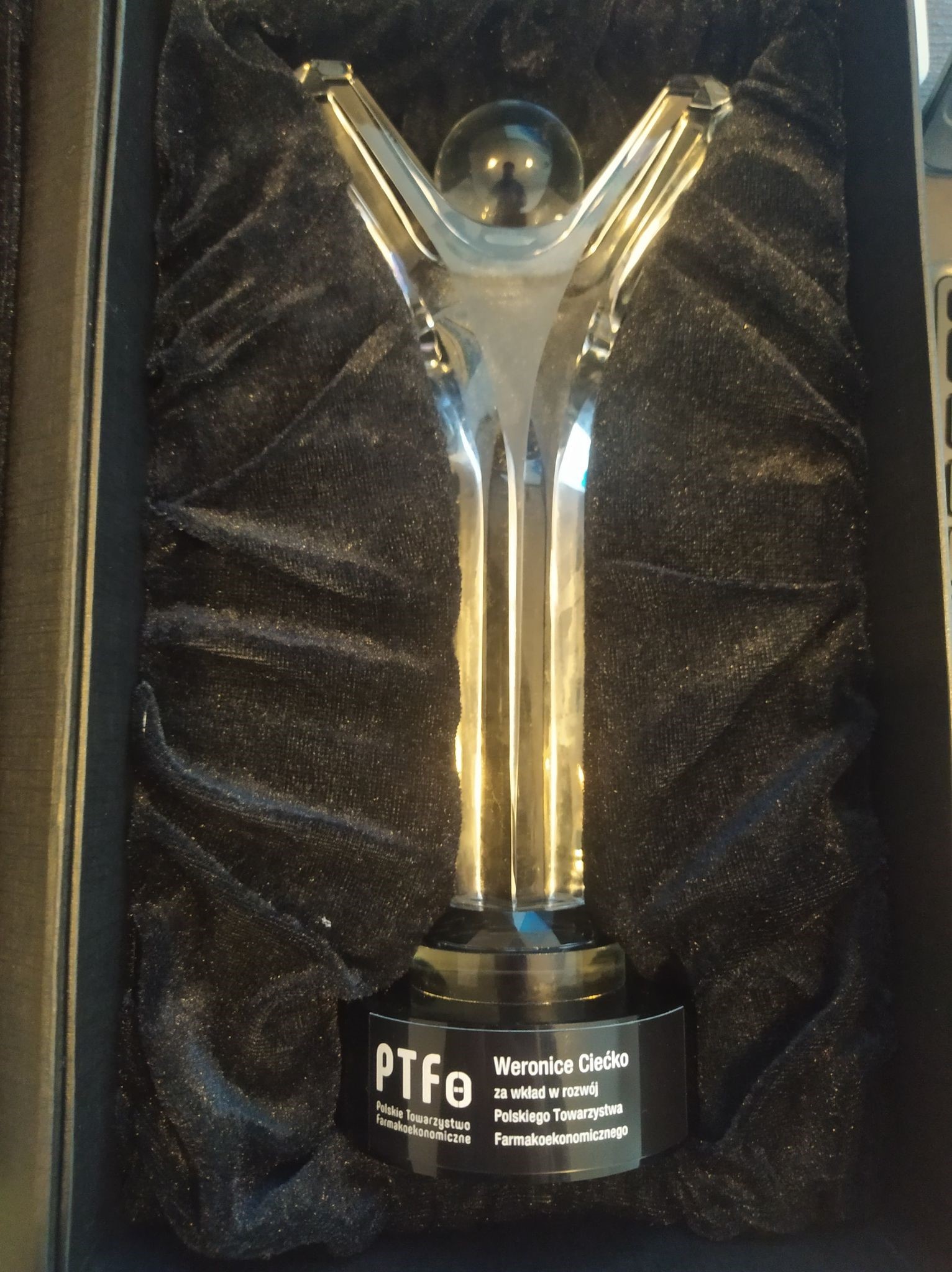 Nagrodę za aktywną działalność na rzecz Polskiego Towarzystwa Farmakoekonomicznego otrzymała mgr Weronika Ciećko – doktorantka w Klinice Alergologii GUMed, pracownik Centrum Rozwoju Kompetencji, Zintegrowanej Opieki i e-Zdrowia, przewodnicząca SKN Ekonomika i Zarządzenie w Ochronie Zdrowia. W ramach sesji prac oryginalnych mgr Weronika Ciećko wygłosiła również prezentację pt. Zastosowanie nowego narzędzia typu PROMs do oceny duszności u chorych na przewlekłe śródmiąższowe choroby płuc.