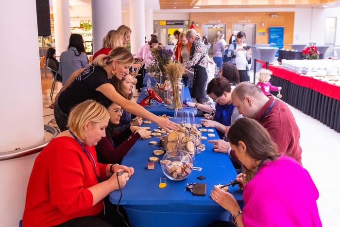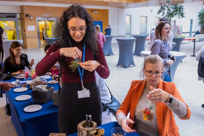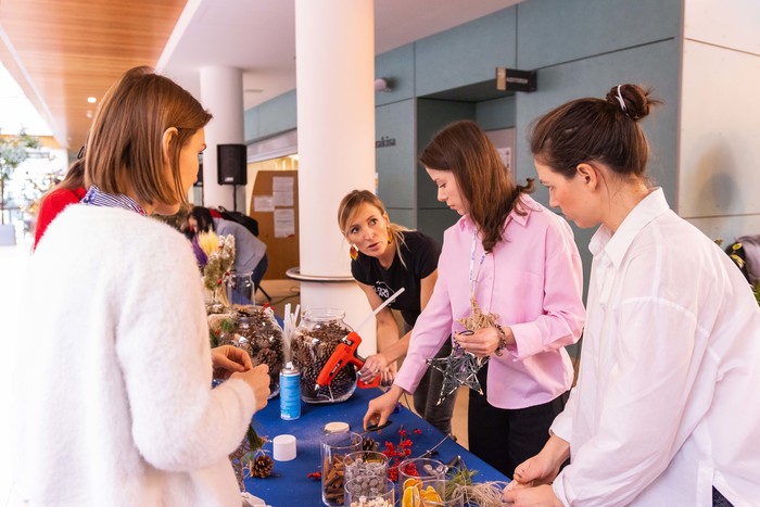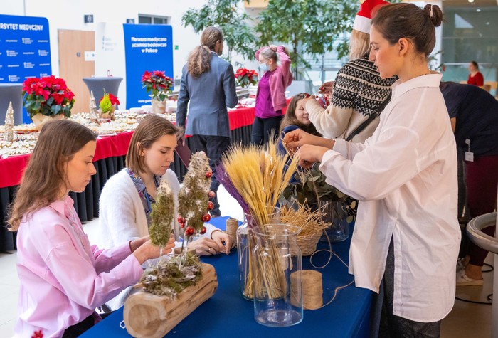 Podczas spotkania można było uczestniczyć w warsztatach zorganizowanych przez pracownie florystyczne. Chętni przygotowywali kompozycje z szyszek, ażurowe gwiazdy, wypalali ornamenty w zawieszkach z plastrów drewna oraz dekorowali pierniczki. Niektóre z ozdób powieszone zostały na świątecznym drzewku w Centrum Medycyny Inwazyjnej. Resztę ozdób przygotowali mali pacjenci pod okiem nauczycielek ze Szkoły Podstawowej nr 90 przy UCK w Gdańsku.
