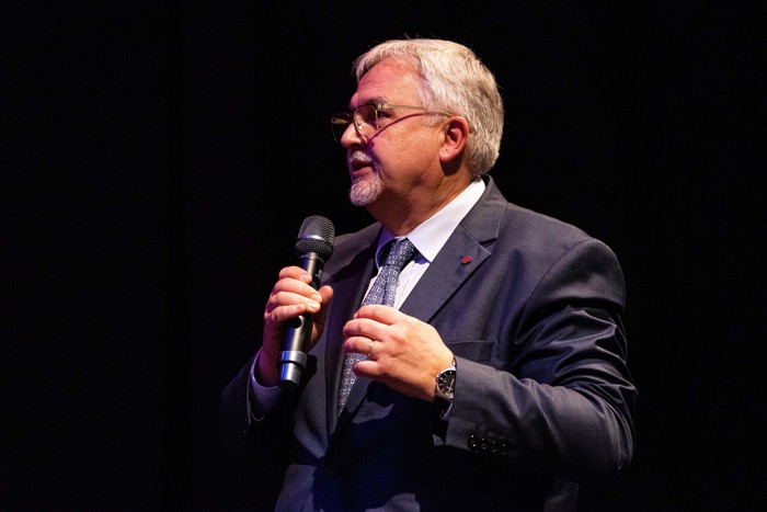 Na zakończenie koncertu głos zabrał dr hab. Tomasz Smiatacz, prorektor ds. studenckich GUMed. Nawiązał do trudnego czasu pandemii, kiedy płyta powstawała.