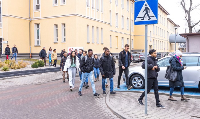 Drugi dzień rozpoczęło spotkanie z Małgorzatą Wacławik, doktorantką z Katedry i Zakładu Toksykologii GUMed, która będzie pełnić rolę opiekuna grupy studentów w trakcie ich nauki w naszej Uczelni. Kolejnym punktem wydarzenia była rozmowa z mec. Aleksandrem Rynkiewiczem dotycząca obowiązujących w Polsce przepisów i norm zachowań, po której studenci wzięli udział w kolejnej lekcji języka polskiego. Zagraniczni goście mogli także poznać Gdańsk, jadąc tramwajem na kampus Wydziału Farmaceutycznego GUMed. Po dotarciu do celu spotkali się z dziekanem WF prof. Wojciechem Kamyszem oraz odebrali legitymacje i identyfikatory. Mieli także okazję zwiedzić kampus Wydziału, poznając budynki, w których przez najbliższe miesiące będą przygotowywać się do roli liderów branży farmaceutycznej.