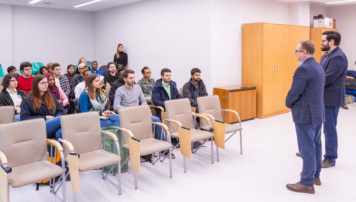Osiemnaścioro studentek i studentów programu International Master in Sustainable Drugs Discovery rozpoczęło drugi semestr swojej nauki, który odbędą w Gdańskim Uniwersytecie Medycznym. Przed inauguracją zajęć zorganizowano w dniach 15-17 lutego 2023 r. Orientation Days, które pozwoliły im poznać GUMed. Towarzyszyła im grupa studentów przybyłych do naszej Uczelni w ramach programu Erasmus+. W imieniu władz GUMed jako pierwszy studentów powitał prorektor ds. nauki prof. Michał Markuszewski.