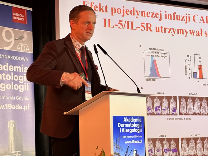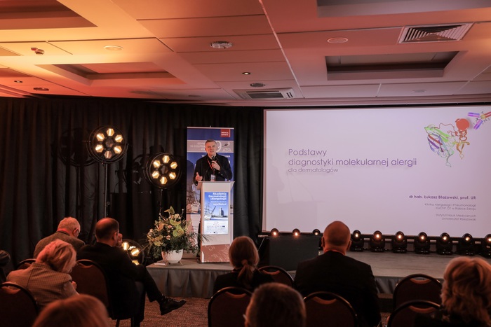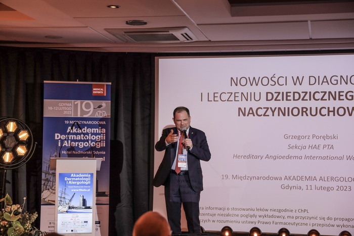Sesję zatytułowaną Alergologia bez granic otworzył wykład prof. Marcina Moniuszki nt. postępów w diagnostyce i leczeniu chorób alergicznych. Dalszą część sesji wypełniły wykłady dotyczące pokrzywki i obrzęku naczynioruchowego. Prof. Grzegorz Porębski przedstawił nowości w diagnostyce i leczeniu wrodzonego obrzęku naczynioruchowego. Specjalistki z KiK Dermatologii, Wenerologii i Alergologii GUMed dr Hanna Ługowska-Umer i prof. Magdalena Trzeciak przedstawiły najbardziej charakterystyczne objawy, w tym manifestacje skórne chorób autozapalnych. Uczestnicy tej sesji mieli też okazję wysłuchać wykładu dr. Łukasza Błażowskiego, który przedstawił temat diagnostyki molekularnej w alergologii. Na zakończenie prof. Roman Nowicki podsumował aktualnie wytyczne nt. postępowania w pokrzywce przewlekłej.