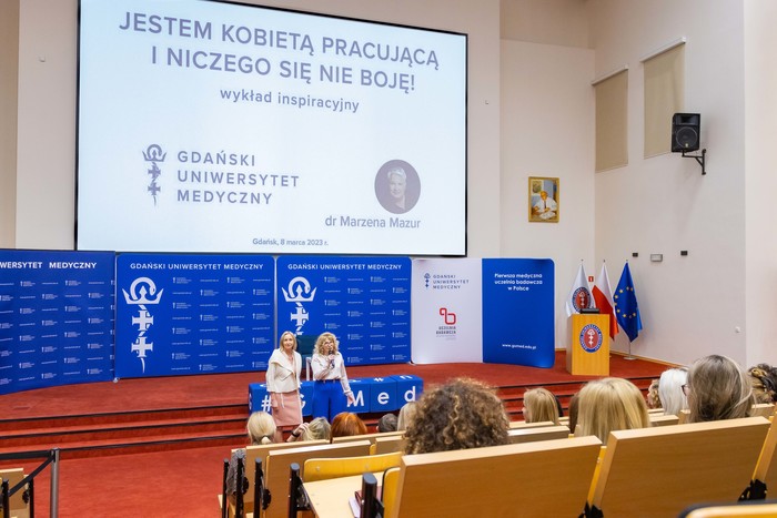Jak zapowiadaliśmy, tak też było – za nami wykład pełen dobrej energii, wiedzy i inspiracji, który dla społeczności Gdańskiego Uniwersytetu Medycznego wygłosiła dr Marzena Mazur. Spotkanie odbywające się 8 marca 2023 r. pod hasłem Jestem kobietą pracującą i niczego się nie boję!, choć dotyczyło wyzwań, z jakimi mierzą się współcześnie kobiety, zainteresowało nie tylko przedstawicielki płci pięknej. Inicjatorkami wydarzenia były prof. Edyta Szurowska, prorektor ds. klinicznych oraz dr hab. Agnieszka Zimmermann, prof. uczelni, prorektor ds. jakości kształcenia. Jego frekwencja pozytywnie zaskoczyła wszystkich i pokazała, jak duża jest potrzeba tego rodzaju inicjatyw.