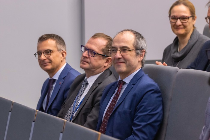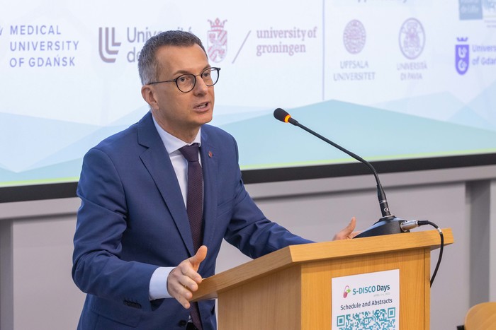W naszej Uczelni gościli również przedstawicieli konsorcjum S-DISCO: prof. Bart De Spiegeleer (lider projektu), prof. Serge Van Calenbergh, dr Evelien Wynendaele z Ghent University (Belgia), prof. Christophe Furman z University of Lille (Francja) oraz dr Peter Fodran z University of Groningen (Holandia). Z ramienia GUMed wydarzenie koordynował kierownik projektu prof. Michał Markuszewski, prorektor ds. nauki. W konferencji uczestniczył także prof. Wojciech Kamysz, dziekan Wydziału Farmaceutycznego GUMed.