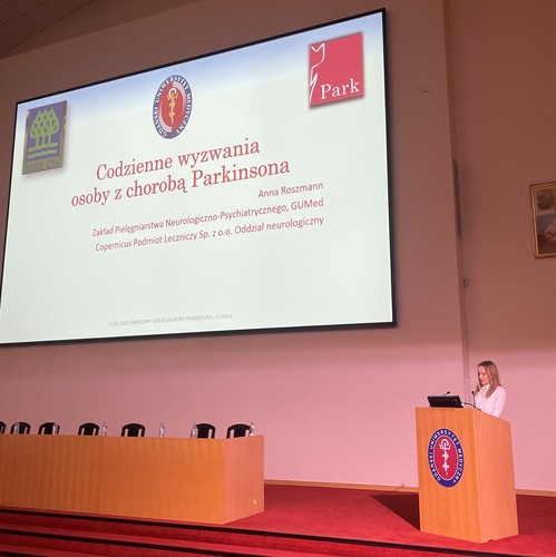 Specjaliści z Zakładu Pielęgniarstwa Neurologiczno-Psychiatrycznego GUMed zorganizowali 11 kwietnia 2023 r. w auli im prof. Olgierda Narkiewicza w Atheneum Gedanense Novum spotkanie z okazji Światowego Dnia Choroby Parkinsona. W trakcie wydarzenia pt. Dzień z Parkinsonem swoje wykłady wygłosili eksperci w zakresie leczenia i opieki nad pacjentami z tym schorzeniem reprezentujący zarówno naszą Uczelnię, jak i inne ośrodki. Organizację spotkania wsparli także studenci III r. kierunku lekarskiego Krzysztof Goch i Julia Zbroińska.