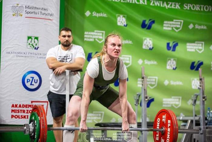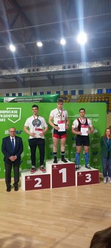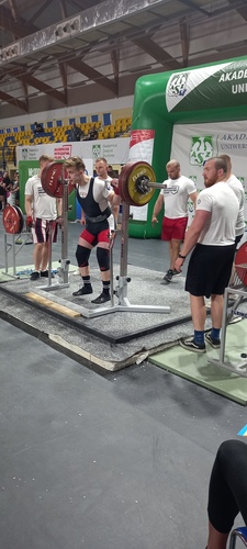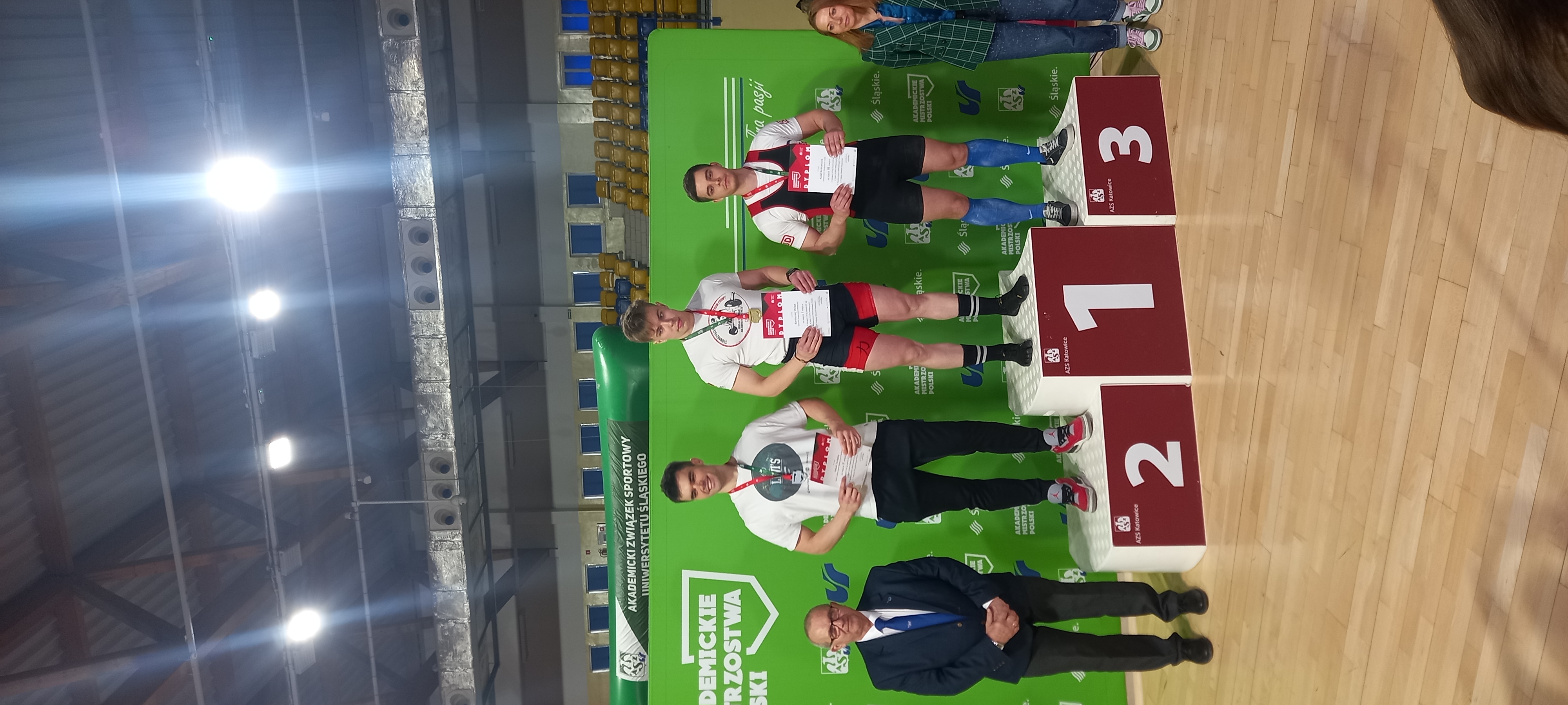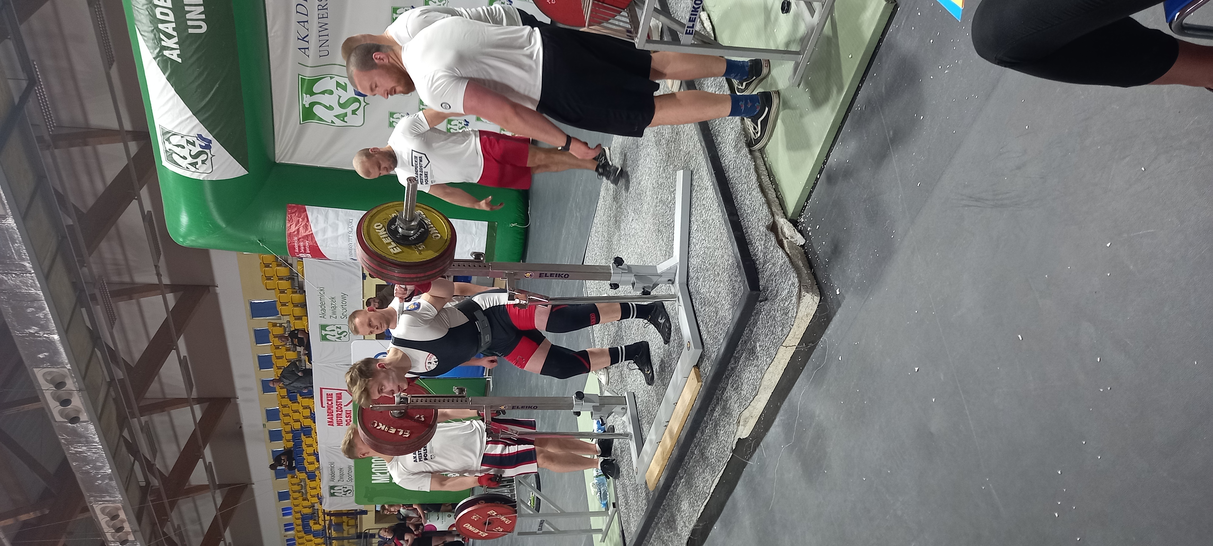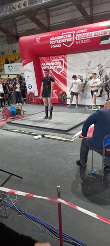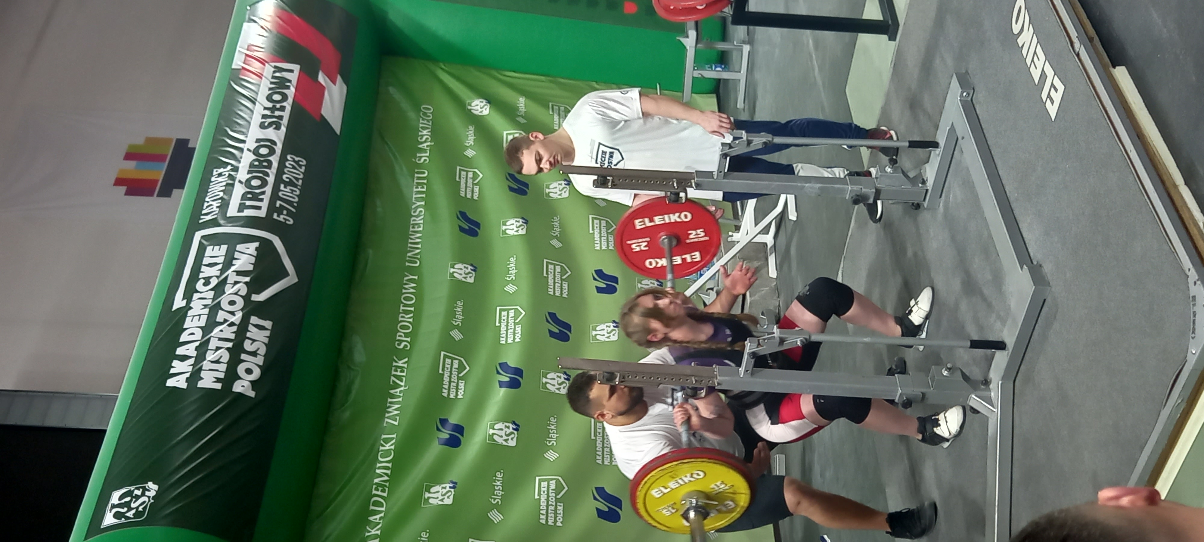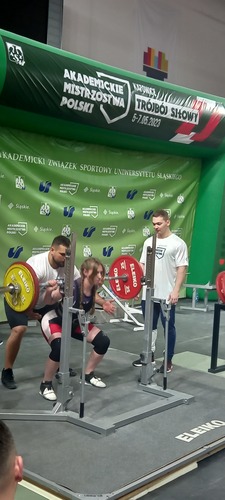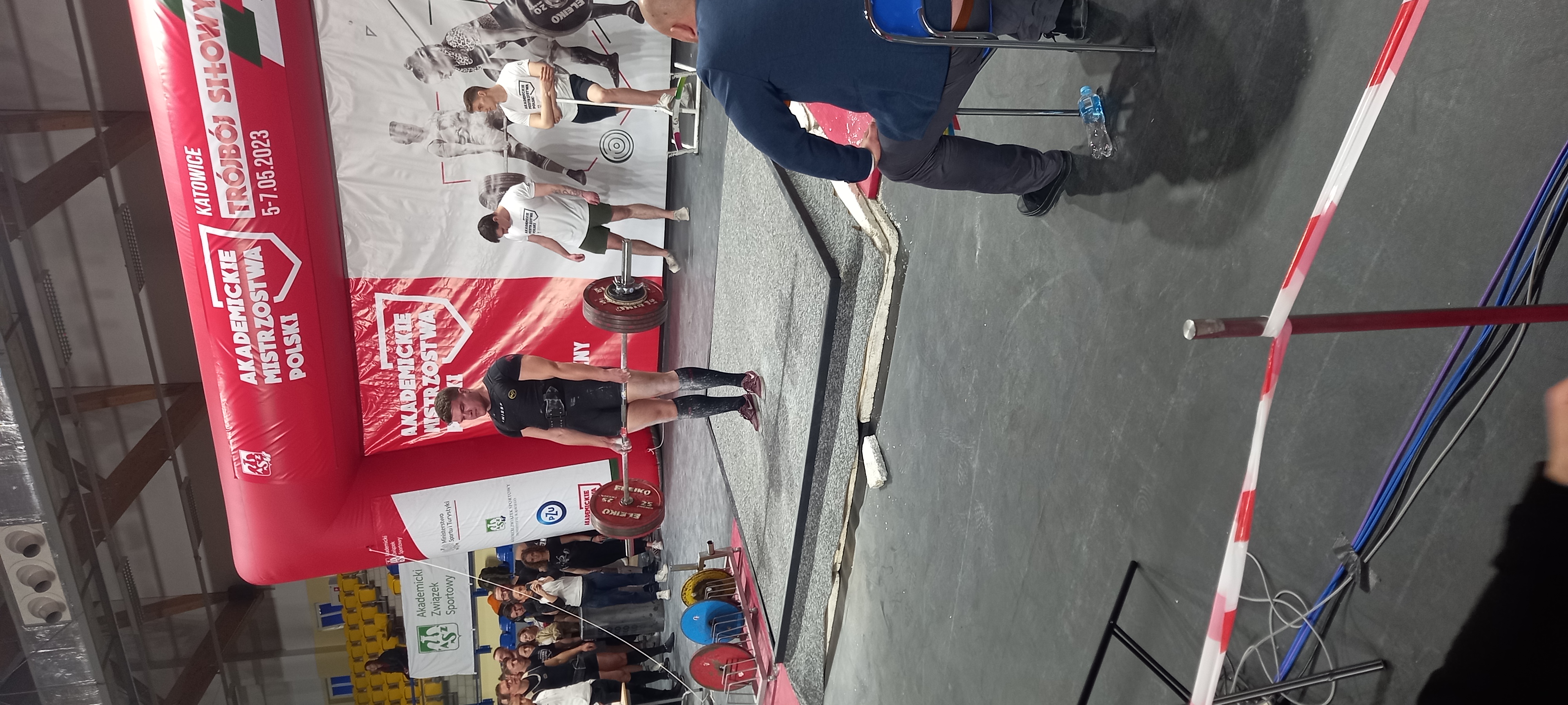 Reprezentanci naszej Uczelni z sukcesami uczestniczyli także w Akademickich Mistrzostwach Polski w Trójboju Siłowym rozegranych w dniach 5-7 maja 2023 r. w Katowicach. Najlepszym spośród studentów uczelni medycznych oraz zdobywcą 2 miejsca w klasyfikacji generalnej w kategorii 93 kg został Bartłomiej Molga (III r. fizjoterapii) z wynikiem łącznym 695kg (przysiad 260 kg / ławka 145 kg / martwy ciąg 290 kg).