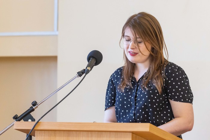 Studentka IV r. farmacji Marta Sierakowska pełniąca funkcję wiceprzewodniczącej ds. nauki i edukacji Polskiego Towarzystwa Studentów Farmacji wręczyła podziękowania członkom PTSF. Nagrody otrzymali: mgr farm. Beata Karpińska, mgr farm. Aleksander Flaszka, mgr farm. Michał Nosal, mgr farm. Bartłomiej Pesta, mgr farm. Wiktoria Figiel, mgr farm. Martyna Gałas, mgr farm. Oliwia Dobbek i mgr farm. Joanna Awiżeń.