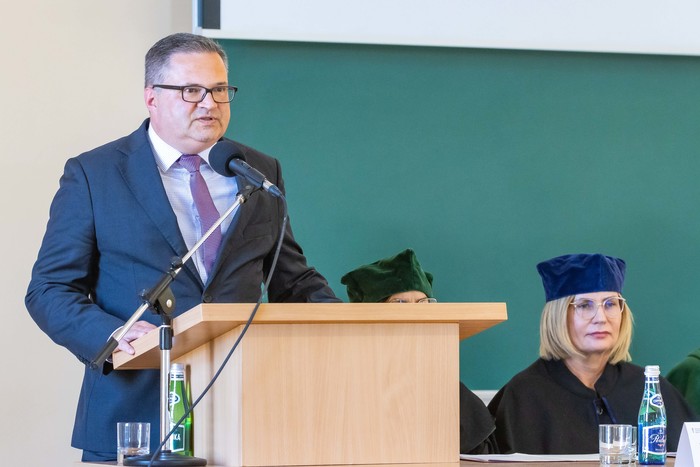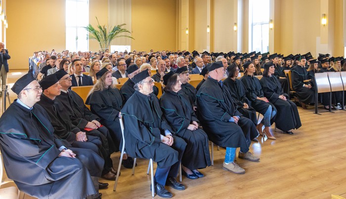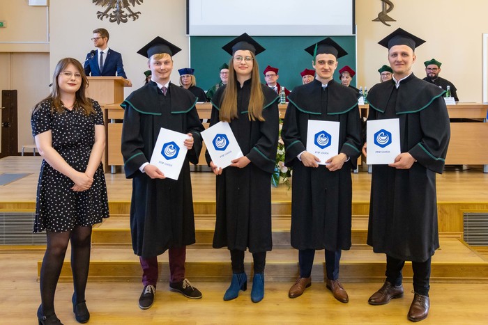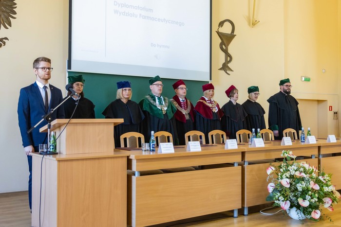 Wręczenie dyplomów ukończenia studiów absolwentom kierunku farmacja rocznika 2017-2023 odbyło się 12 maja 2023 r. w Auditorium Maximum Wydziału Farmaceutycznego. W uroczystości, której przewodniczył dziekan WF prof. Wojciech Kamysz, uczestniczyli: prorektor ds. nauki prof. Michał Markuszewski, prorektor ds. jakości kształcenia dr hab. Agnieszka Zimmermann, prof. uczelni, prodziekani Wydziału Farmaceutycznego: prof. Magdalena Prokopowicz, dr hab. Danuta Siluk, prof. uczelni, dr hab. Bartosz Wielgomas, prof. uczelni, prodziekan Wydziału Nauk o Zdrowiu dr hab. Aleksandra Gaworska-Krzemińska, prof. uczelni, prodziekan Wydziału Lekarskiego prof. Ewa Słomińska, członkowie Rady Wydziału, członkowie Rady Pracodawców, zaproszeni goście oraz rodziny absolwentów.