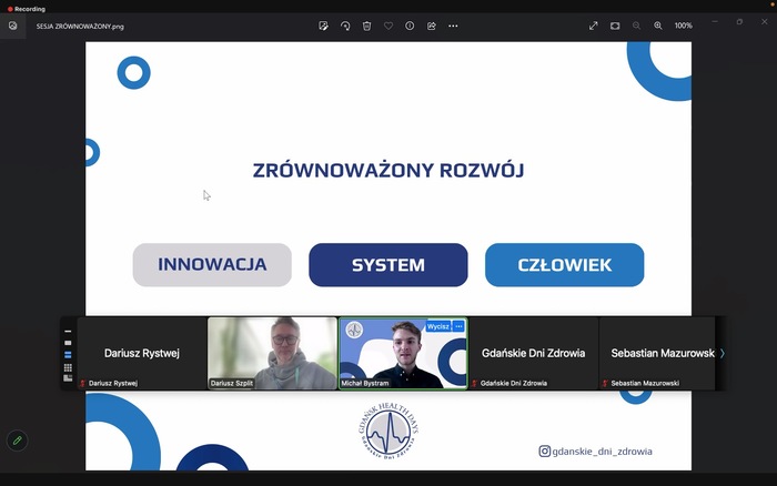 Konferencję otworzyli: lic. Michał Bystram, główny przewodniczący komitetu organizacyjnego konferencji, student II r. II st. zdrowia publicznego; mgr Monika Serkowska, współtwórczyni Gdańskich Dni Zdrowia, doktorantka Katedry i Kliniki Pediatrii, Gastroenterologii, Alergologii i Żywienia Dzieci GUMed oraz współkoordynator konferencji Dariusz Rystwej, student III r. kierunku zdrowie publiczne – zarządzanie w systemie zdrowia.