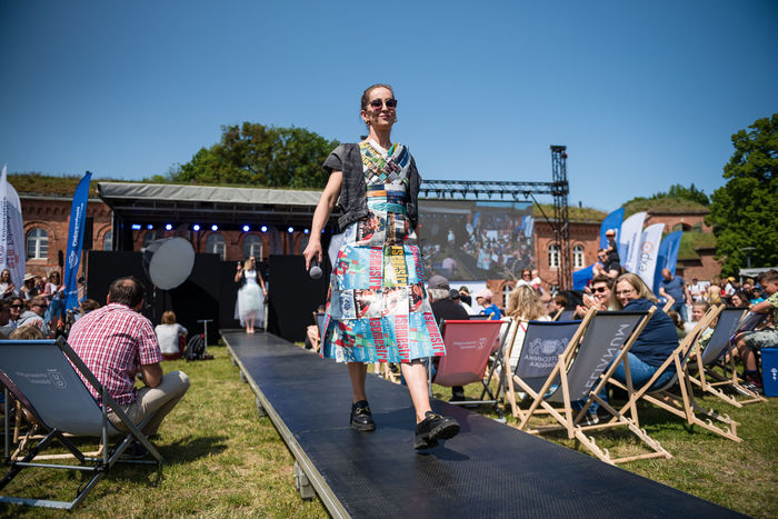 Podczas trwania Pikniku Nauki Fahrenheita na Scenie naukowej można było podziwiać pokaz mody zero waste, na którym ku zachwytom zgromadzonych gości przedstawiciele Uczelni Fahrenheita i Hevelianum prezentowali stroje oraz biżuterię wykonane z niestandardowych materiałów lub ponownie wykorzystanych.