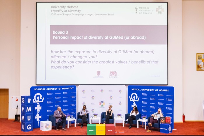 Kolejna z cyklu debat w ramach drugiego etapu kampanii Kultura Szacunku pt. Różni i Równi odbyła się 6 czerwca 2023 r. pod hasłem Equality in Diversity / Równość w Różnorodności w Auditorium Primum im. prof. Olgierda Narkiewicza w Atheneum Gedanense Novum GUMed. Partnerami kampanii są Urząd Marszałkowski Woj. Pomorskiego i Urząd Miejski w Gdańsku, a część działań jest realizowana we współpracy z Uniwersytetem Gdańskim oraz Związkiem Uczelni w Gdańsku im. Daniela Fahrenheita.