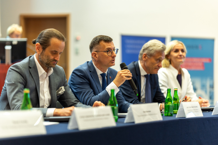 od lewej: Paweł Czudaj, dr hab. Agnieszka Zimmermann, prof. uczelni, Piotr Bromber, prof. Marcin Gruchała, prof. Zbigniew Gaciong, dr hab. Anna Kołcz