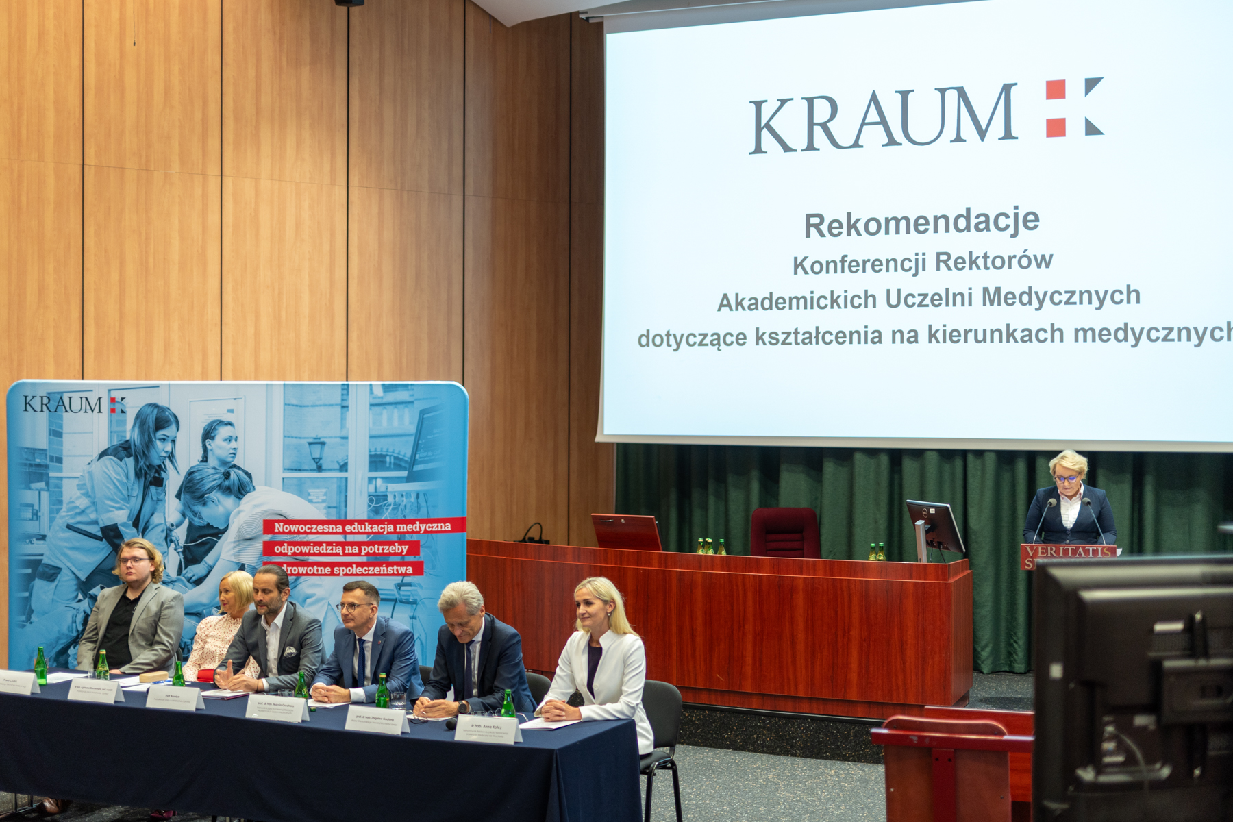 Dokument ogłoszono 16 czerwca br. podczas konferencji prasowej zorganizowanej na Warszawskim Uniwersytecie Medycznym. W dyskusji udział wzięli: prof. Marcin Gruchała, przewodniczący KRAUM, rektor Gdańskiego Uniwersytetu Medycznego; rektor Warszawskiego Uniwersytetu Medycznego prof. Zbigniew Gaciong, wiceminister zdrowia Piotr Bromber, dr hab. Agnieszka Zimmermann, prof. uczelni, koordynatorka zespołu opracowującego rekomendacje, prorektor ds. jakości kształcenia GUMed, dr hab. Anna Kołcz, pełnomocnik Rektora ds. jakości kształcenia z Uniwersytetu Medycznego we Wrocławiu oraz reprezentujący studentów Paweł Czudaj, przedstawiciel Komisji Wyższego Szkolnictwa Medycznego, z Uniwersytetu Medycznego im. Karola Marcinkowskiego w Poznaniu. Obecna była także Małgorzata Zadorożna, dyrektor Departamentu Rozwoju Kadr Medycznych MZ oraz reprezentanci niemal wszystkich uczelni członkowskich KRAUM.