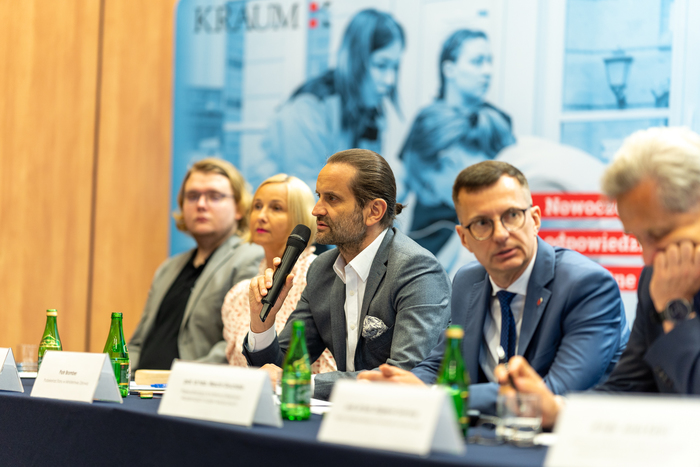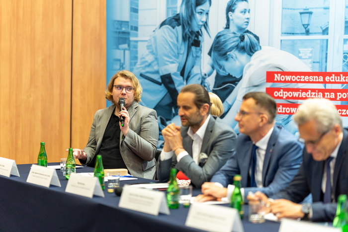 – W imieniu studentów dziękuję Konferencji Rektorów Akademickich Uczelni Medycznych za włączenie nas w te rozmowy jako pełnoprawnego członka w tak ważnej dyskusji – mówił Paweł Czudaj z Komisji Wyższego Szkolnictwa Medycznego. – Rzeczywistość wokół nas zmienia się dynamicznie i niejednokrotnie koledzy i koleżanki z młodszych lat mają zupełnie inne oczekiwania dotyczące kształcenia na kierunkach medycznych niż my mieliśmy. Także same studia nas zmieniają i uczą przede wszystkim wielkiej pokory.