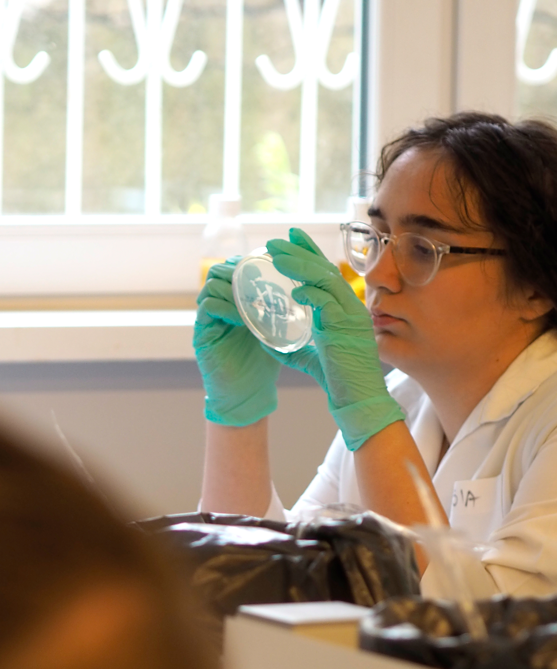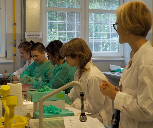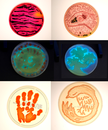 Uczniowie Państwowego Liceum Plastycznego w Gdyni im. Magdaleny Abakanowicz wzięli udział w warsztatach pt. Bio-Art zorganizowanych w dniach 13-14 czerwca 2023 r. w Katedrze i Zakładzie Mikrobiologii Farmaceutycznej GUMed. Tematem przewodnim spotkania była sztuka wykorzystania żywych organizmów – w tym przypadku bakterii – jako tworzywa artystycznego. Uczestnicy warsztatów mogli przekonać się, jaki jest efekt spotkania sztuki z biologią. Mieli oni do dyspozycji kilka gatunków bakterii oraz kilka rodzajów agarowych pożywek, na których mikroorganizmy rosną, tworząc kolorowe kolonie. Młodzi twórcy wykorzystali drobnoustroje jako „pigment” a pożywki na szalkach Petriego jako „płótno”. W rezultacie powstały niezwykłe, unikalne dzieła.