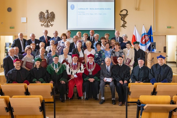 W gronie jubilatów nie zabrakło wieloletnich pracowników jednostek Wydziału Farmaceutycznego. Z rocznika 1965-1970 byli to: dr Krzysztof Kobyłczyk z Katedry i Zakładu Chemii Nieorganicznej i dr Brunon Woyczikowski z Katedry i Zakładu Farmacji Stosowanej. Z rocznika 1966-1971 obecni byli: wieloletni pracownicy Katedry i Zakładu Chemii Fizycznej dr Jan Halkiewicz i mgr Zygmunt Jamrógiewicz, dr Maria Metler z Zakładu Medycyny Laboratoryjnej i dr Jacek Teodorczyk z Katedry i Zakładu Chemii Nieorganicznej. Z rocznika 1968-1973 w uroczystości wzięli udział: dr Danuta Rajzer z Katedry i Zakładu Chemii Farmaceutycznej oraz prof. Marek Wesołowski – wieloletni kierownik Katedry i Zakładu Chemii Analitycznej, dziekan Wydziału Farmaceutycznego w latach 2002-2008.