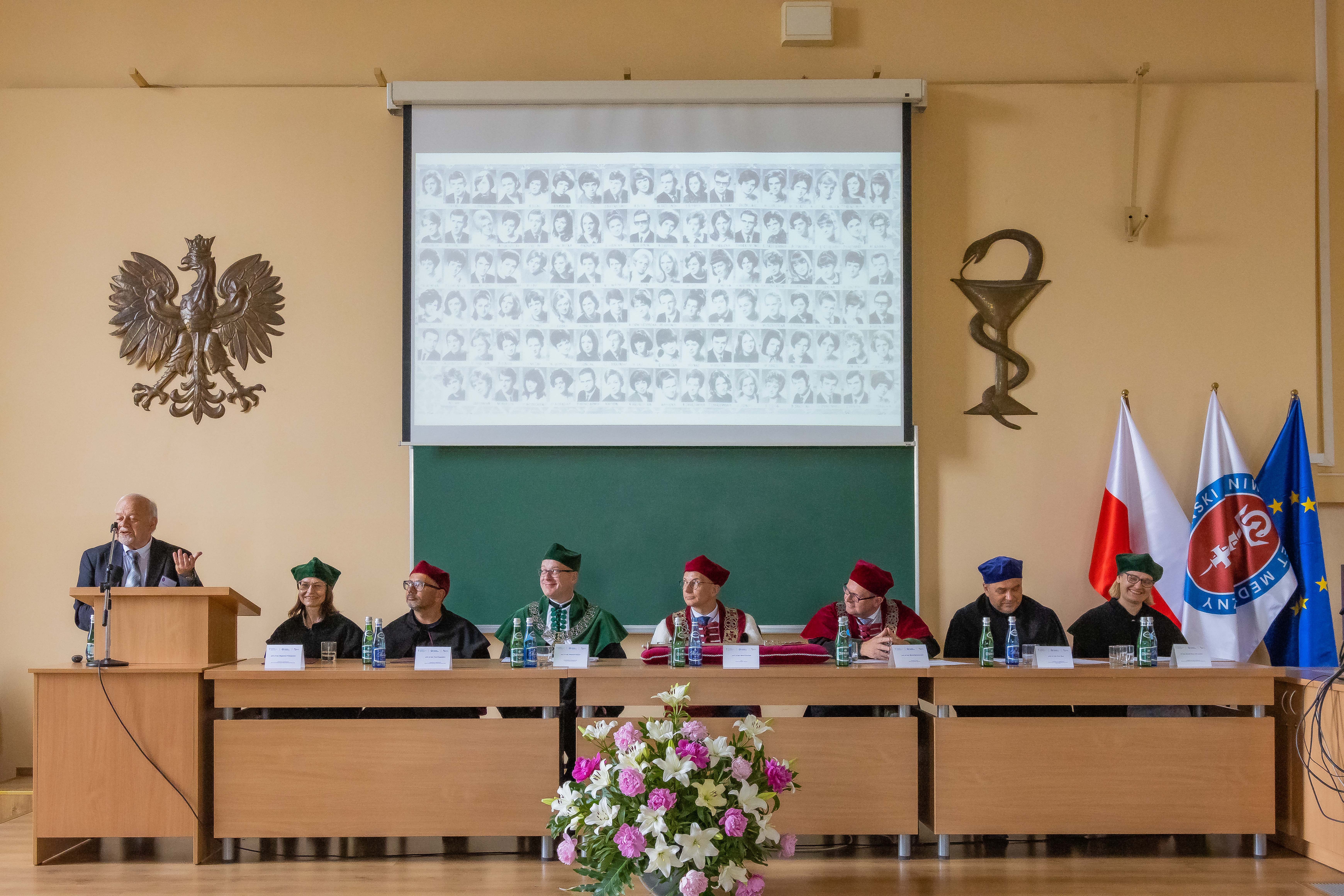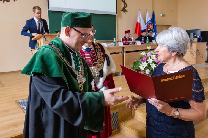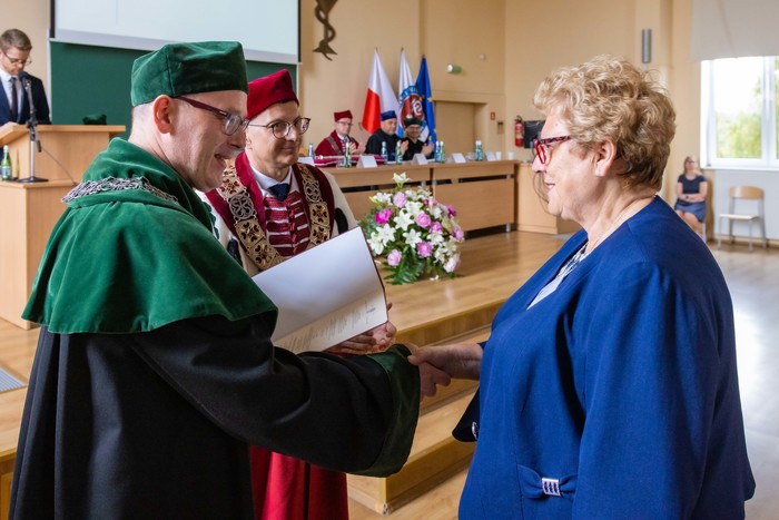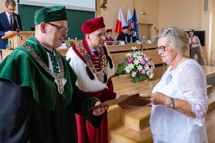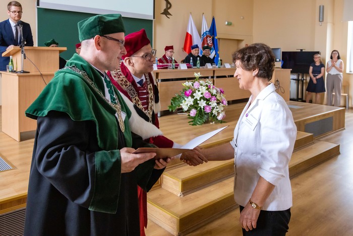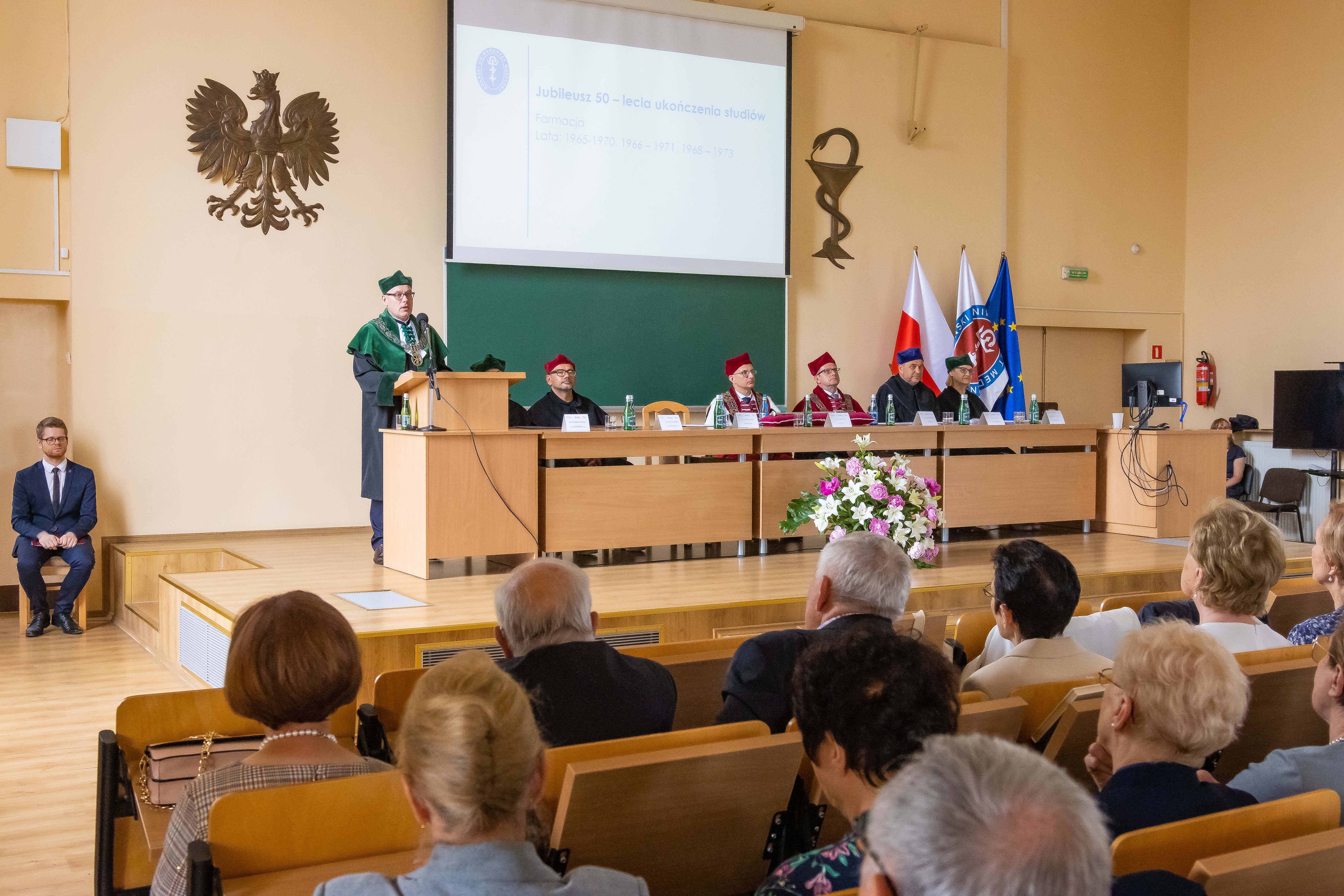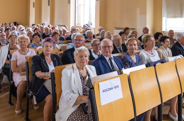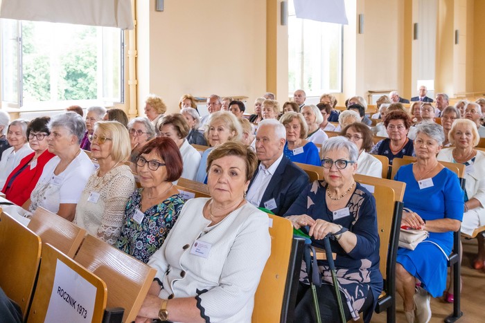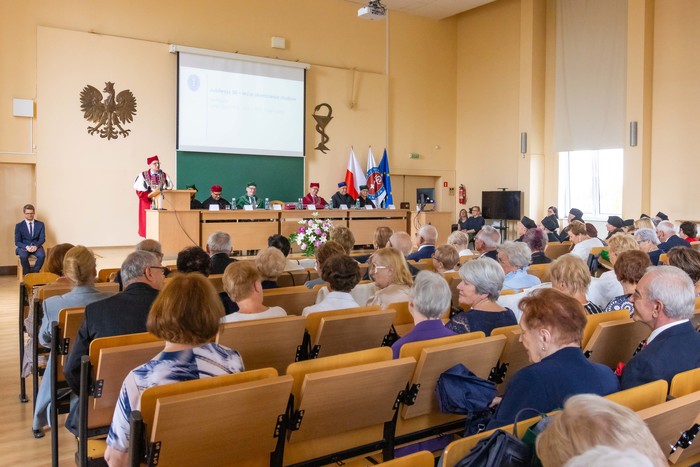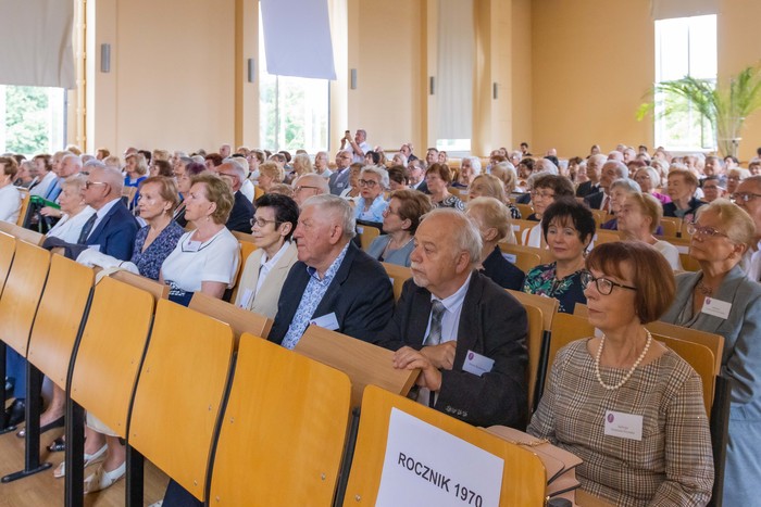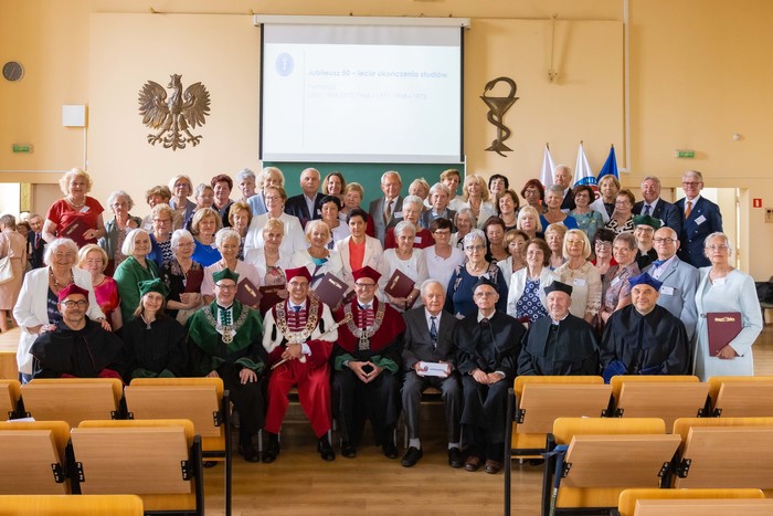 Za nami piękny jubileusz 50-lecia ukończenia studiów połączony z odnowieniem dyplomów magistra farmacji absolwentów z lat 1970, 1971, 1973. W uroczystości, która odbyła się 23 czerwca br., udział wzięli: rektor GUMed prof. Marcin Gruchała, prorektor ds. nauki prof. Michał Markuszewski, dziekan Wydziału Farmaceutycznego prof. Wojciech Kamysz wraz z gronem prodziekańskim reprezentowanym prof. Magdalenę Prokopowicz i dr hab. Danutę Siluk, prof. uczelni. Obecni byli również: prodziekan Wydziału Nauk o Zdrowiu prof. Piotr Wąż, prodziekan Wydziału Lekarskiego prof. Paweł Zagożdżon, a także członkowie Rady Wydziału oraz zaproszeni goście.