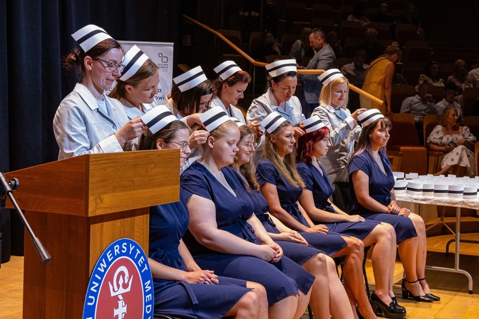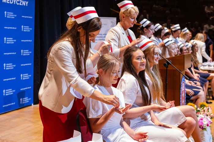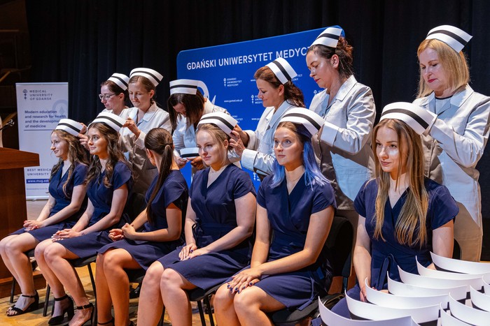 Podczas zorganizowanej 28 czerwca 2023 r. uroczystości czepkowania symbolicznie wprowadzono do zawodu absolwentów kierunków pielęgniarstwo oraz położnictwo Wydziału Nauk o Zdrowiu Gdańskiego Uniwersytetu Medycznego rocznika 2020-2023.