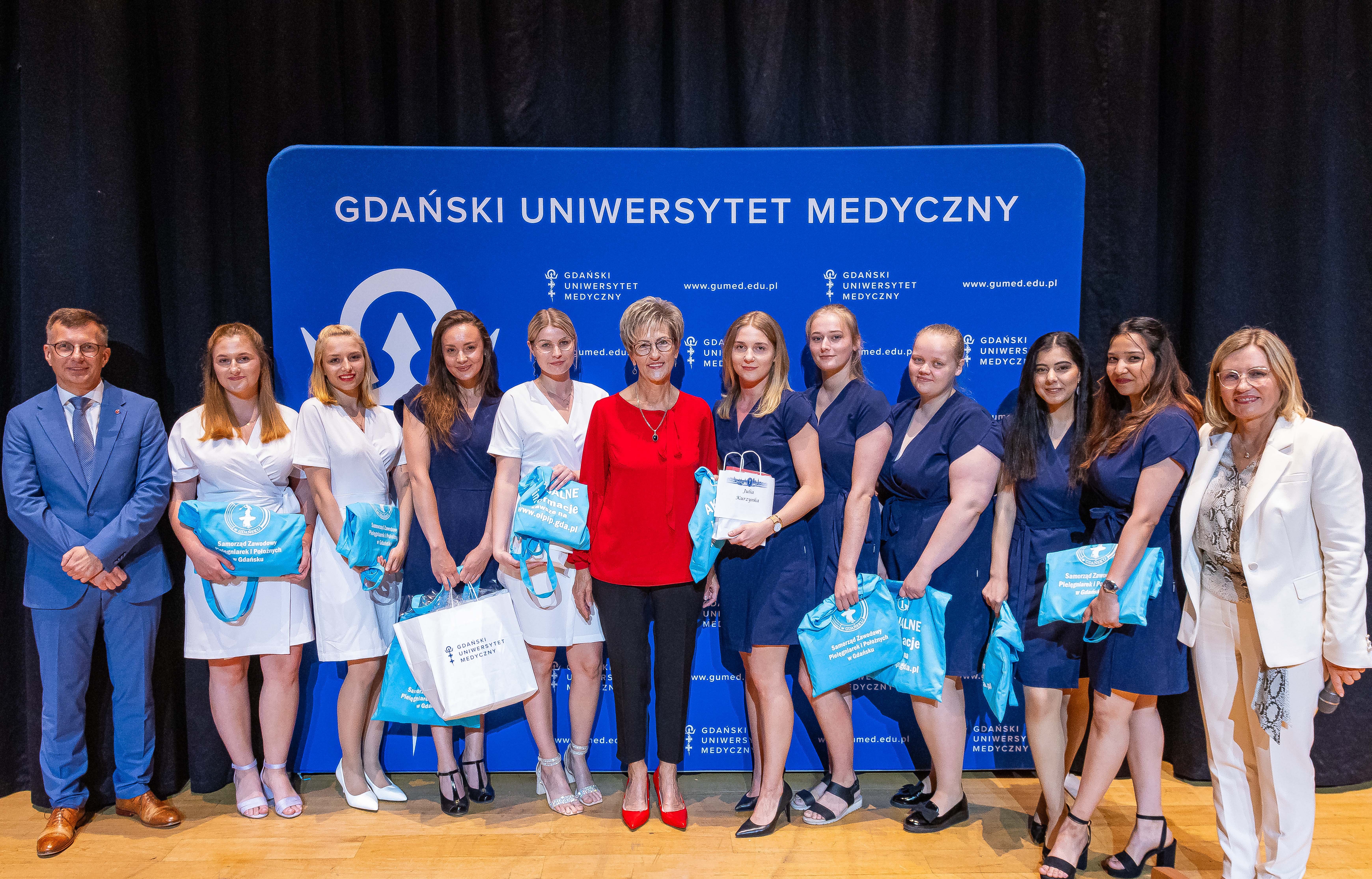 Uczestników spotkania powitała prof. Aleksandra Gaworska-Krzemińska – prodziekan ds. promocji i rozwoju Wydziału Nauk o Zdrowiu, która poprowadziła uroczystość. W wydarzeniu udział wzięli zaproszeni goście, wśród których znaleźli się: prof. Marcin Gruchała – rektor GUMed, dr hab. Agnieszka Zimmermann, prof. uczelni – prorektor ds. jakości kształcenia, dr hab. Tomasz Smiatacz – prorektor ds. studenckich oraz prof. Piotr Wąż – prodziekan Wydziału Nauk o Zdrowiu. Obecny był także sekretarz stanu w Ministerstwie Zdrowia Waldemar Kraska oraz przedstawiciele szpitali współpracujących z naszym Uniwersytetem: Jakub Kraszewski, Anna Lignowska, Lucyna Nowicka, Jolanta Madej, Anna Kosowska, Krystyna Paszko i Dariusz Kostrzewa.