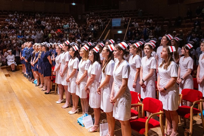 W imieniu kończących studia głos zabrali starostowie III r. kierunków pielęgniarstwa i położnictwa. Dokonując krótkiego podsumowania minionych trzech lat, podziękowali wszystkim zaangażowanym w przygotowanie do zawodu. Swoich starszych kolegów pożegnali przedstawiciele studentów II r. obu kierunków. Po otrzymaniu czepków absolwenci złożyli przysięgę, zobowiązując się do strzeżenia godności zawodu pielęgniarki i położnej. Wydarzenie zakończył Hymn pielęgniarek i położnych.