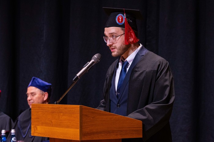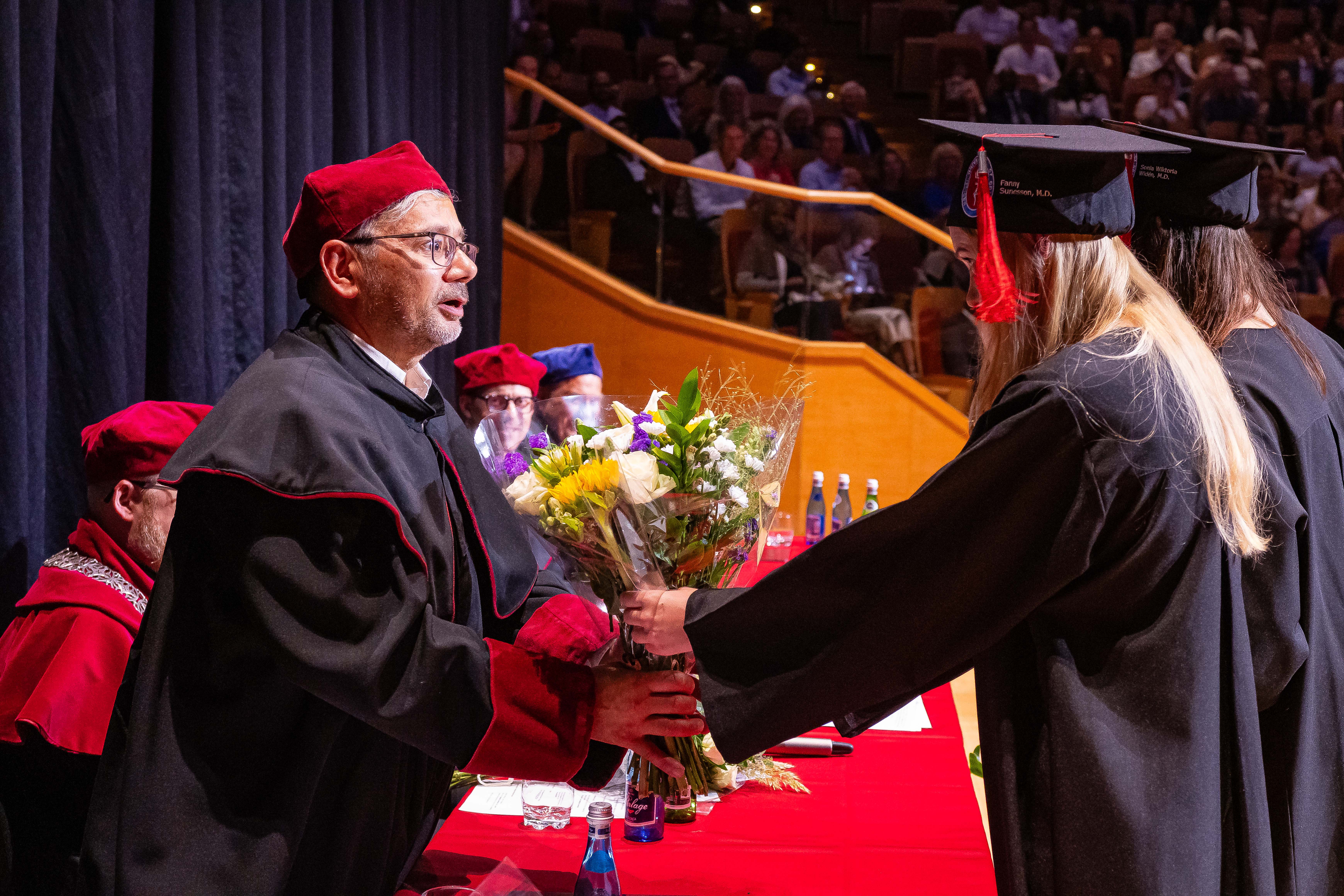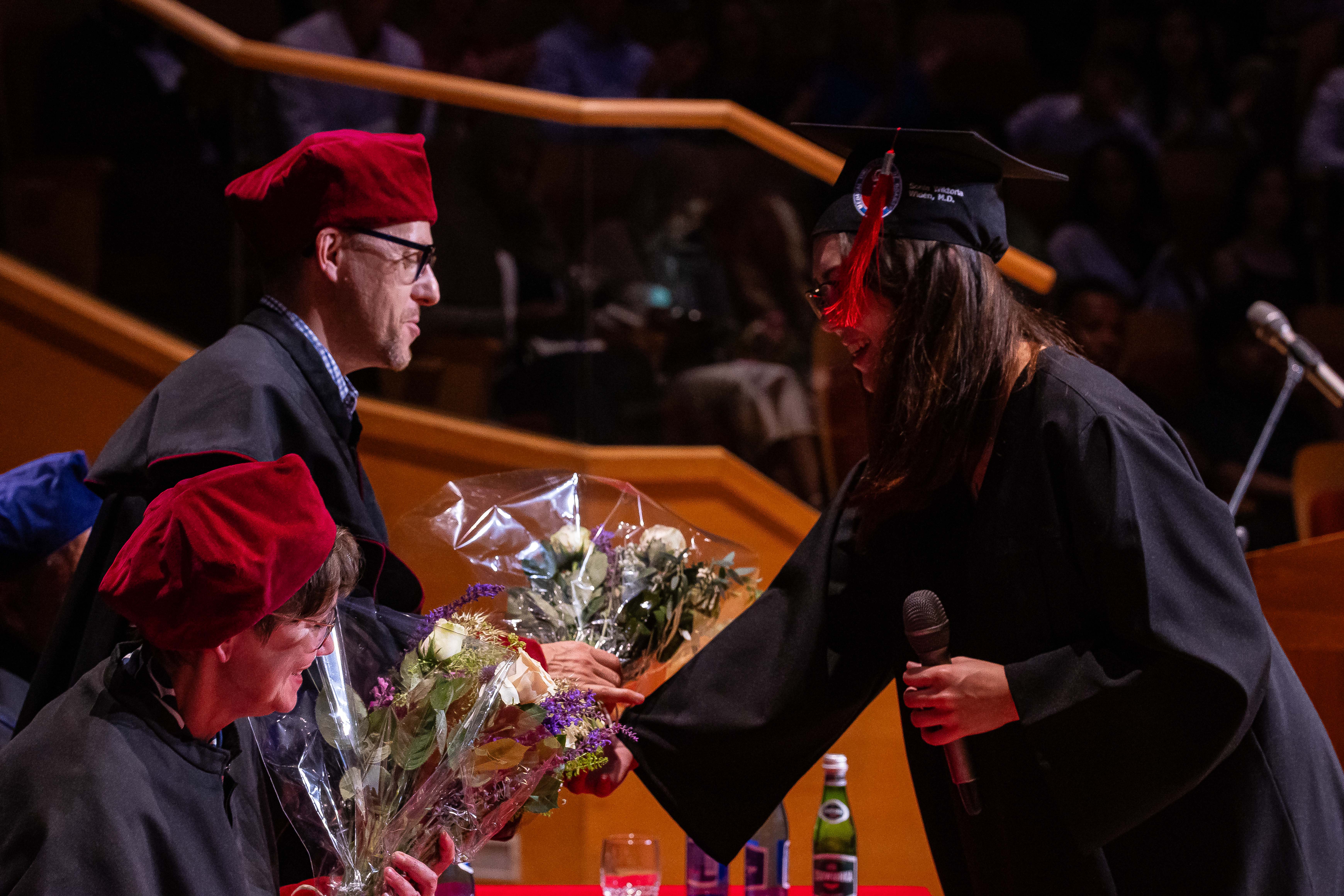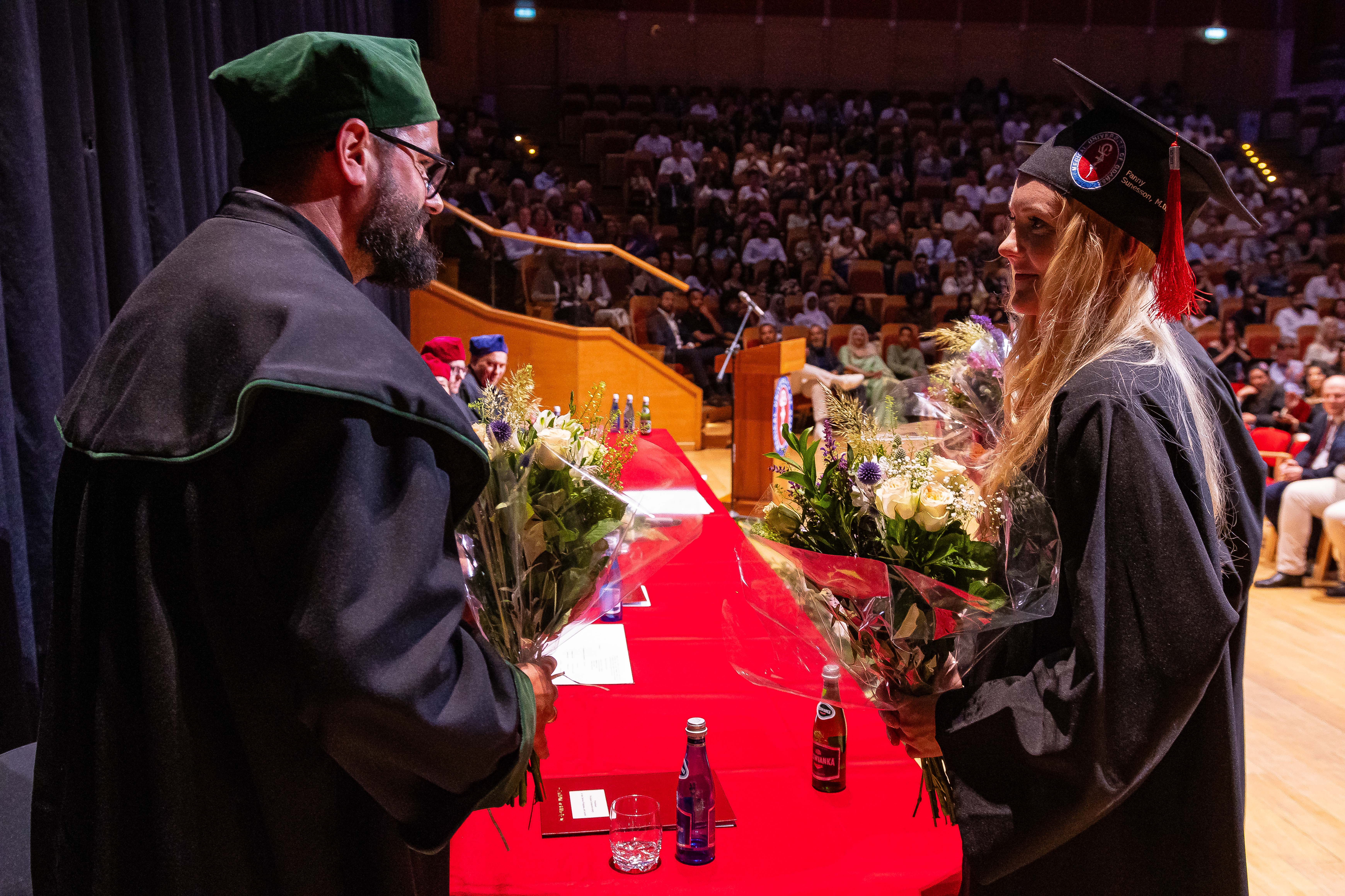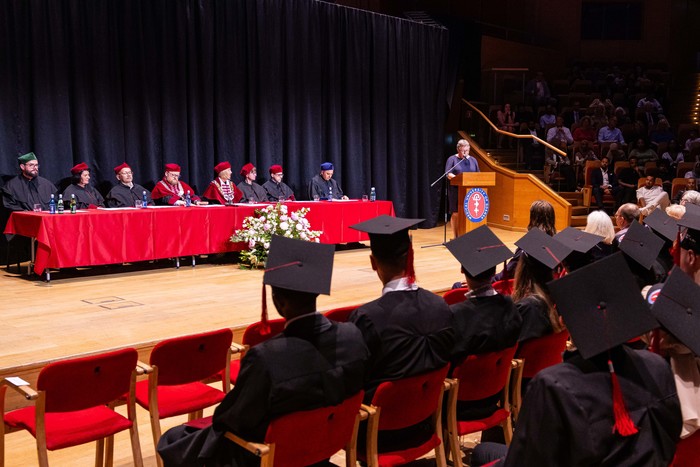 Okolicznościowe przemówienia wygłosili: prorektor prof. Agnieszka Zimmermann, dziekan WL prof. Radosław Owczuk, prodziekan WL dr hab. Kamil Chwojnicki, lek. dent. Ewa Siewierska-Chomeniuk, dr Jacek Kaczmarek i lek. Janusz Springer, a także reprezentanci absolwentów: lek. Madeleine Kucharski, lek. Fanny Sunesson i lek. M. Nader Albin Abo Njab. Po złożeniu przyrzeczenia lekarskiego absolwenci odebrali dyplomy z rąk Prorektor ds. jakości kształcenia i Dziekana Wydziału Lekarskiego.