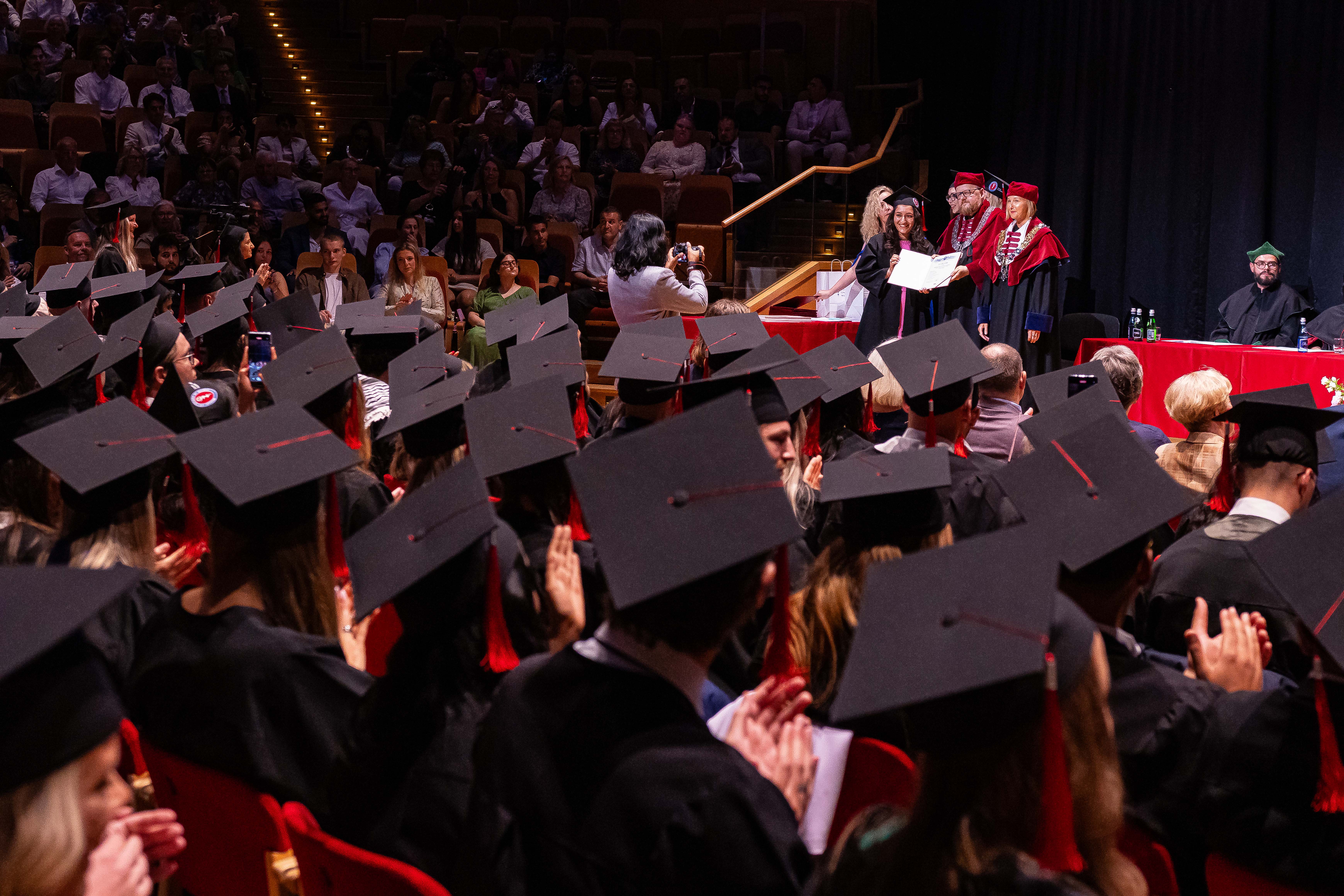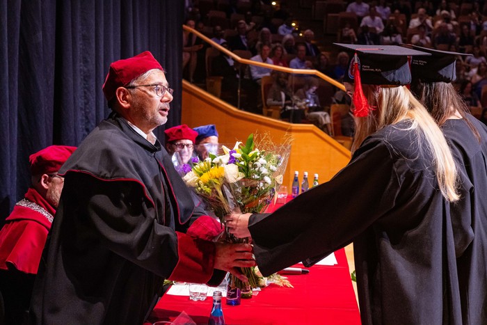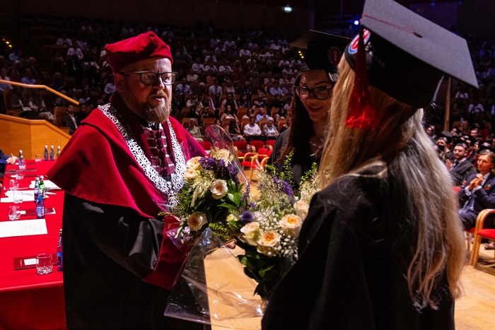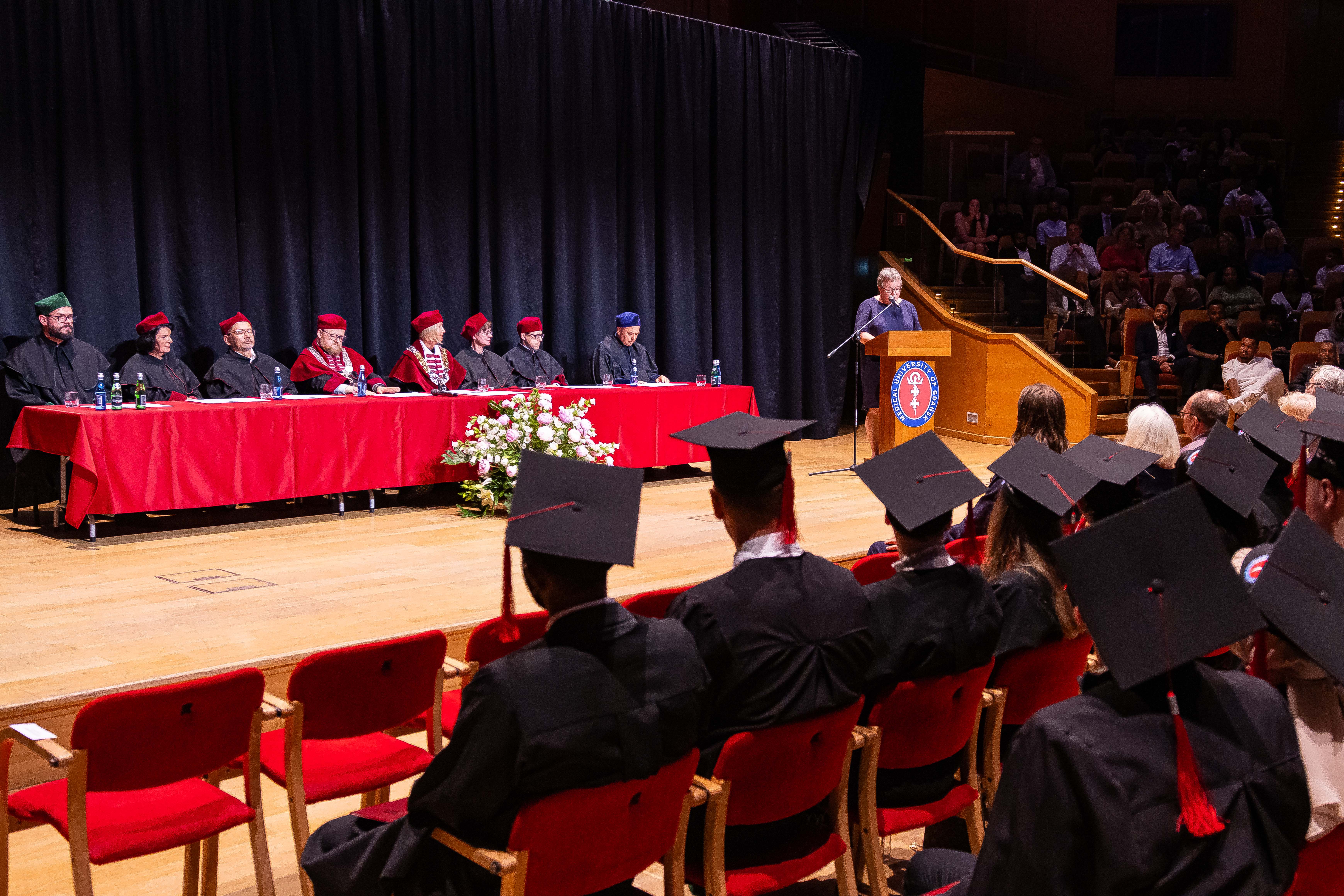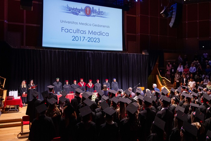 Sto trzynaścioro absolwentów kierunku lekarskiego – English Division rocznika 2017-2023 odebrało swoje dyplomy. W uroczystości zorganizowanej 30 czerwca 2023 r. w Polskiej Filharmonii Bałtyckiej im. Fryderyka Chopina w Gdańsku za stołem prezydialnym zasiedli: prorektor ds. jakości kształcenia GUMed dr hab. Agnieszka Zimmermann, prof. uczelni, dziekan Wydziału Lekarskiego prof. Radosław Owczuk, prodziekani WL: prof. Aida Kusiak, dr hab. Maria Bieniaszewska, prof. Paweł Zagożdżon, dr hab. Kamil Chwojnicki, a także prof. Piotr Wąż, prodziekan Wydziału Nauk o Zdrowiu i dr hab. Bartosz Wielgomas, prof. uczelni, prodziekan Wydziału Farmaceutycznego.