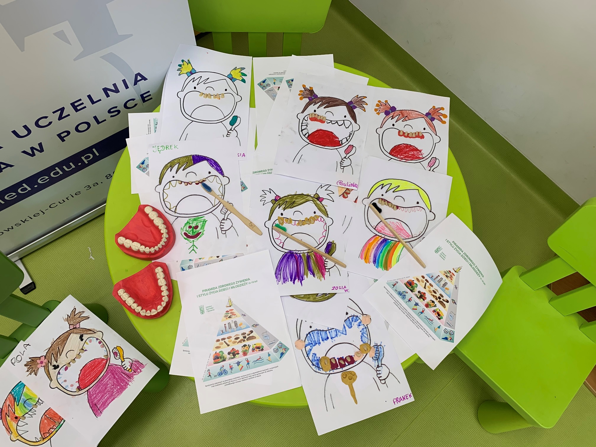 Podczas spotkania dzieci dowiedziały się, jak należy poprawnie korzystać ze szczoteczki do zębów, jak często i długo powinno się myć zęby, a także jakie produkty spożywcze powodują próchnicę i choroby dziąseł. Mali słuchacze aktywnie uczestniczyli w dyskusji i warsztatach, podczas których mogli m.in. dokładnie obejrzeć, a następnie pomalować odlane z gipsu zęby. Realizatorka projektu SOPKARD-Junior dr Klaudia Suligowska opowiedziała również o aktualnej piramidzie żywieniowej i wyjaśniła, z jakich produktów powinna się składać zdrowa dieta połączona z aktywnością fizyczną.