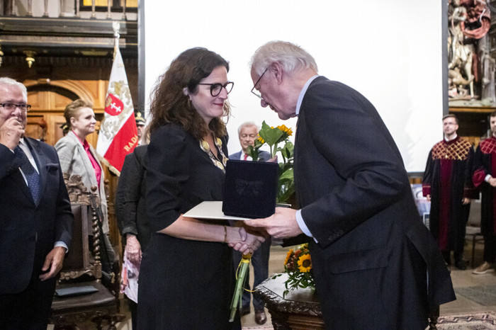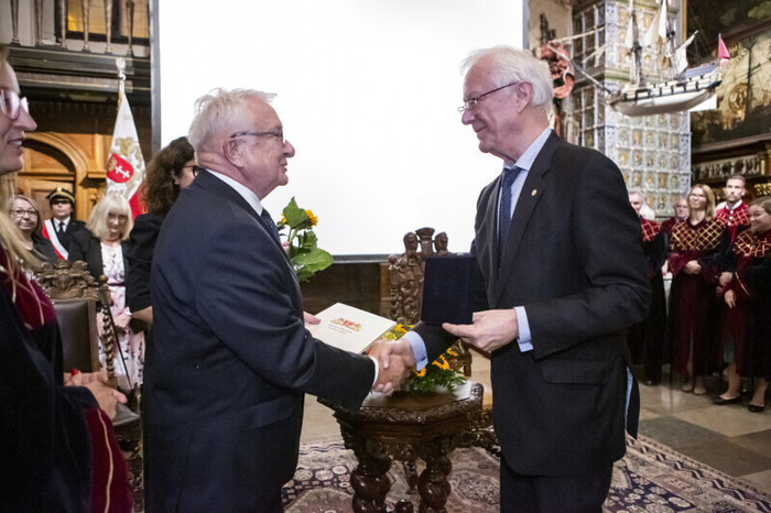 – To dla mnie duży zaszczyt być w gronie nagrodzonych osób, to bardzo budujące – zaznaczył prof. Janusz Limon. – Bardzo doceniam fakt, że spotykamy się w sali, w której wielokrotnie wręczałem dyplomy doktorskie i habilitacje. Dużą wdzięczność czuję do Rady Miasta za to, że dba o tę salę, w której od kilkuset lat odbywają się różne uroczystości, nie tylko medalowe, ale również kościelne, religijne, różnego rodzaju przyjęcia. To jest jakby genius loci Gdańska. To miejsce buduje naszą pamięć i naszą kulturę. Dziękuję Radzie za dbanie o tę tradycję, to jest bardzo ważne.