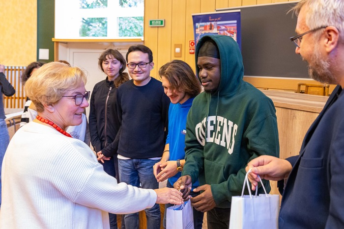 Na pierwszych zajęciach studentów powitali m.in. prorektor ds. studenckich dr hab. Tomasz Smiatacz; prorektor ds. jakości kształcenia dr hab. Agnieszka Zimmermann, prof. uczelni; pełnomocnik Rektora ds. rekrutacji anglojęzycznej i umiędzynarodowienia prof. Maria Dudziak oraz kierownik Działu Rekrutacji dr hab. Sławomir Wójcik.