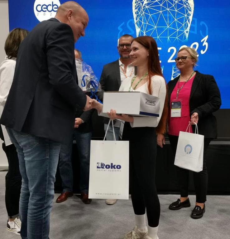 Reprezentantka GUMed Yevheniia Vysochyna, studentka kierunku techniki dentystyczne zwyciężyła w konkursie Korona na pięć z plusem, który odbył się w dniach 21-22 września 2023 r. w Łodzi podczas Środkowoeuropejskiej Wystawy Produktów Stomatologicznych CEDE 2023. Jego organizatorem było Polskie Towarzystwo Techników Dentystycznych (PTTD) przy współpracy z partnerami.
