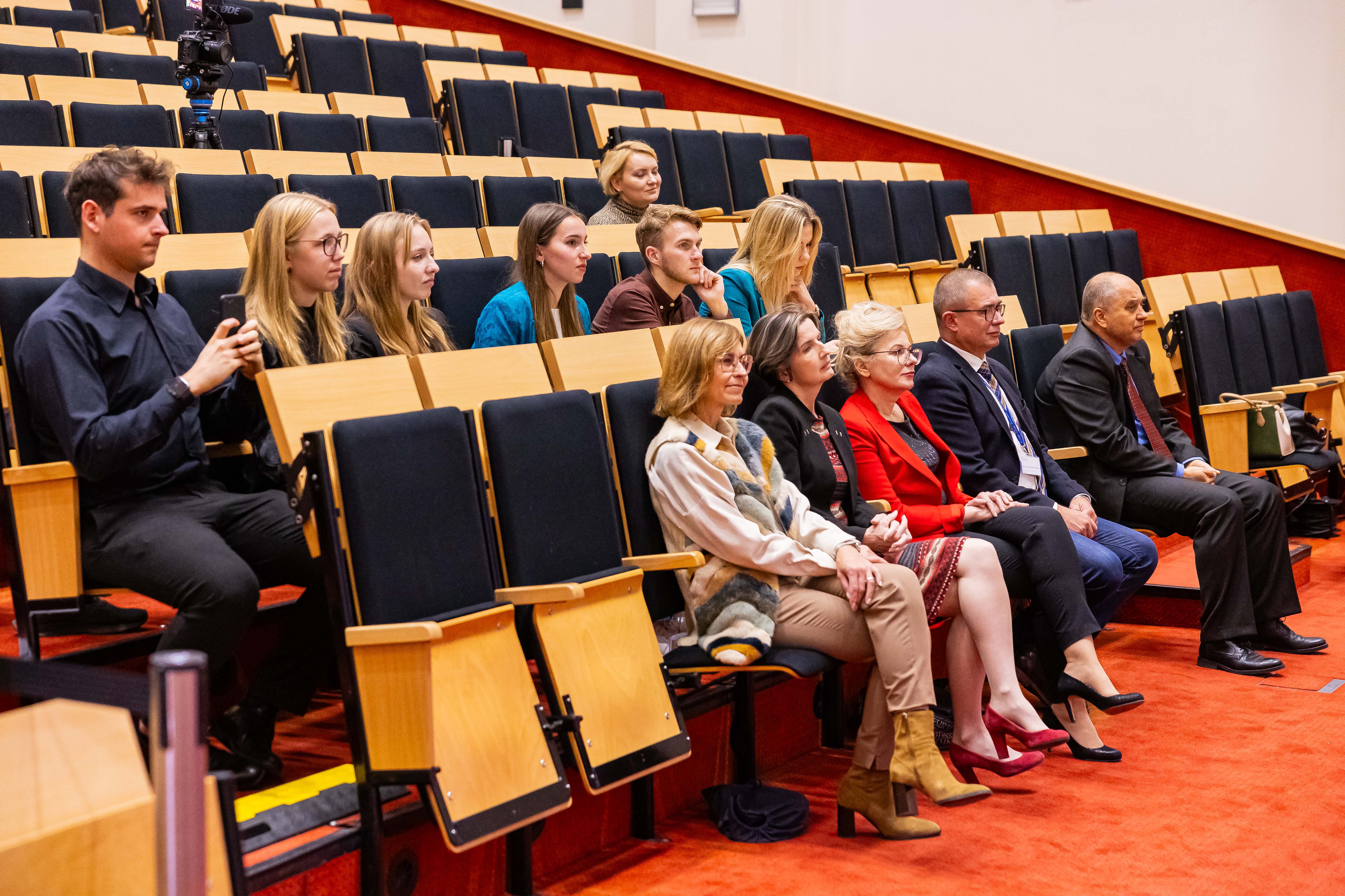 – Mają Państwo zaplecze w postaci Dziekanów, Prodziekanów, Rektora, Prorektorów i innych osób oraz jednostek wewnątrz Uczelni. Nie są Państwo jednoosobowo postawieni naprzeciwko problemu, bo często jest on złożony. Myślę, że Uczelniany Samorząd Studencki także będzie z Państwem współdziałał – podkreślił dr hab. Tomasz Smiatacz, prorektor ds. studenckich. – W imieniu władz Uczelni mogę zadeklarować, że jesteśmy również gotowi wesprzeć Państwa na różnych poziomach.
