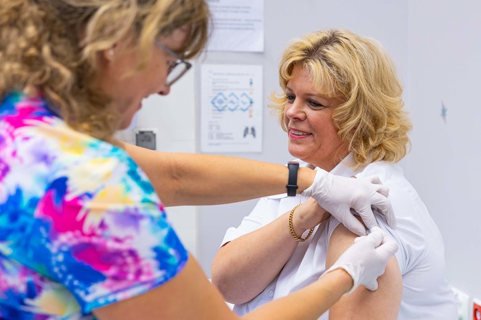 – Szczepienia są wielkim osiągnięciem medycyny – przekonywał dr Jerzy Karpiński, dyrektor Wydziału Zdrowia Pomorskiego Urzędu Wojewódzkiego. – Oprócz pracy administracyjnej, zajmuję się także pacjentami paliatywnymi w opiece domowej. Ze względu na ich zdrowie i osłabioną odporność chcę się zaszczepić, aby chronić te osoby przed ciężkimi powikłaniami, jakie może mieć grypa. Dodatkowo we własnej rodzinie mam osobę, którą się opiekujemy, która ma 93 lata i wymaga opieki z naszej strony. Dlatego szczepię się i zachęcam wszystkich, aby korzystać z dobrodziejstw medycyny.