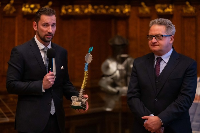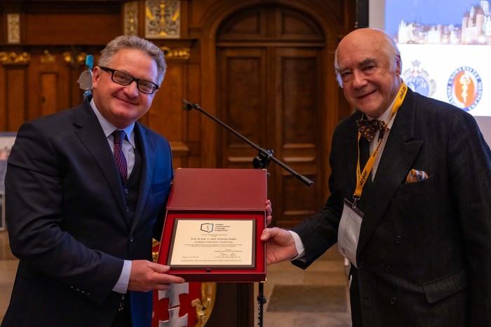 Uroczystość rozpoczęto od wystrzału z feluki, który uświetnia ważne wydarzenia odbywające się w Dworze Artusa. Następnie osiągnięcia gdańskiego ośrodka, jedynego w Polsce i pierwszego w Europie Środkowo-Wschodniej wyróżnionego certyfikatem AOSpine Centre przybliżył dr hab. Rafał Pankowski, natomiast prorektor prof. Edyta Szurowska zwróciła szczególną uwagę na nowatorskie prace naukowe i zabiegi wdrażane w Katedrze i Klinice Ortopedii i Traumatologii Narządu Ruchu GUMed, jak m.in. innowacyjne narzędzie chirurgiczne służące do operacyjnego leczenia skolioz.