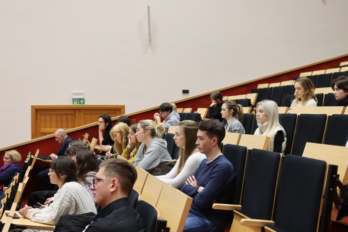 Uczestników spotkania przywitały Zuzanna Gurzyńska i Karolina Kucka, studentki psychologii zdrowia, członkinie SKN Komunikacji Medycznej, współorganizatorki wydarzenia, które następnie oddały głos jego inicjatorowi prof. Jackowi Bigdzie.