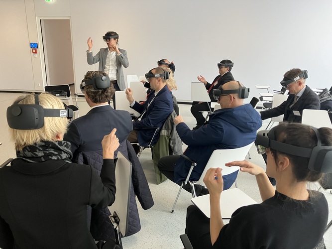 Przedstawiciele GUMed i UCK zwiedzili szpital uniwersytecki w Rostocku, obejrzeli stosowany system chirurgii robotycznej oraz sposób organizacji diagnostyki radiologicznej, molekularnej i genetycznej w hematologii. Uzupełnieniem rozmów o prowadzonych i planowanych w obu Uczelniach projektach naukowych wykorzystujących nowe technologie było zapoznanie się z laboratoriami badawczymi m.in. wirtualnej rzeczywistości i diagnostyki onkologicznej na zwierzętach (m.in. diagnostyki PET/TK i MRI 7T dla zwierząt).