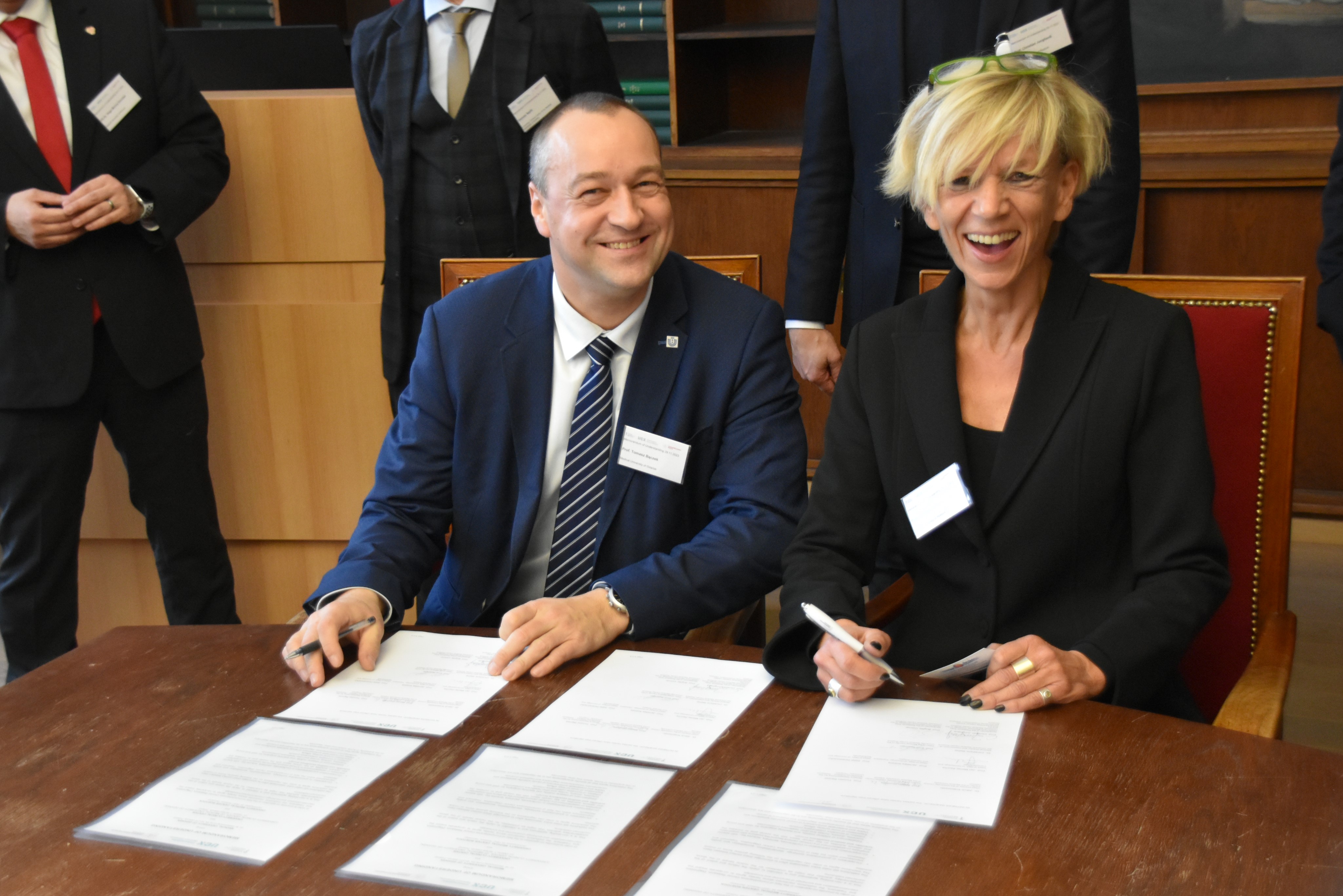 Gdański Uniwersytet Medyczny, Uniwersyteckie Centrum Kliniczne w Gdańsku i Uniwersyteckie Centrum Medyczne w Rostocku zawarły 29 listopada br. porozumienie o współpracy w dziedzinie kompleksowych badań, diagnostyki i leczenia nowotworów. W imieniu Rektora dokument sygnowała prof. Edyta Szurowska, prorektor ds. klinicznych. Memorandum dotyczy w szczególności prowadzenia wspólnych badań i projektów, dzielenia się wiedzą i dobrymi praktykami, a także wymiany personelu, standaryzacji opieki nad pacjentem i poprawy jakości.