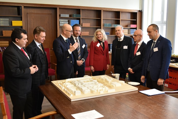 Ze strony Uniwersytetu Medycznego w Rostocku w spotkaniu udział wzięli: prof. Emil Reisinger, dziekan Wydziału Lekarskiego, prof. Christian Junghans, hematolog, rzecznik Comprehensive Cancer Center Mecklenburg-Vorpommern, prof. Brigitte Vollmar, rzecznik Research Area HealthTech Medicine-Oncology, dr Hugo Murua Escobar, kierownik Haemmatologic Molecular Diagnostics, dr Carolin Gabler, koordynator Comprehensive Cancer Center i Stefan Menzel, rzecznik uczelni.