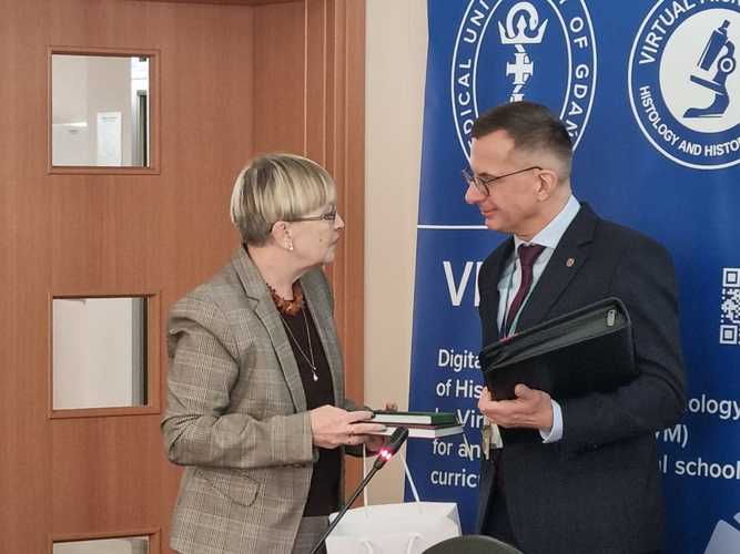 W ramach grantu EU Erasmus+ Digital transformation of Histology and Histopathology by Virtual Microscopy (VM) for an innovative medical school curriculum (VM3) Gdański Uniwersytet Medyczny w dniach 27-28 listopada br. odwiedziła kadra naukowo-dydaktyczna z jednostek partnerskich, reprezentująca: Grigore T. Popa University Of Medicine And Pharmacy w Iasi w Rumunii, Meditcinsky Universitet-Plovdiv w Bulgarii, Universidad De Alicante w Hiszpani, University Of Peloponnese w Grecji oraz koordynatora inicjatywy Fundatia Euroed w Rumunii. Liderem projektu strony polskiej jest Katedra i Zakład Histologii GUMed. Konferencję zainaugurował prof. Marcin Gruchała, rektor GUMed, który przywitał zgromadzonych gości.