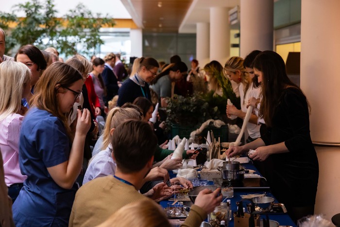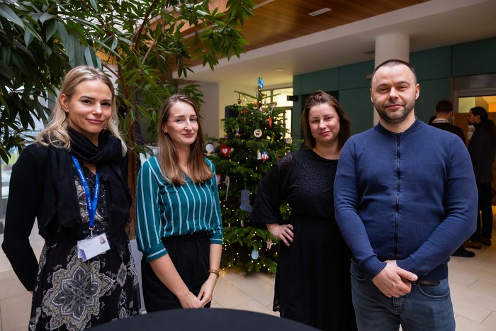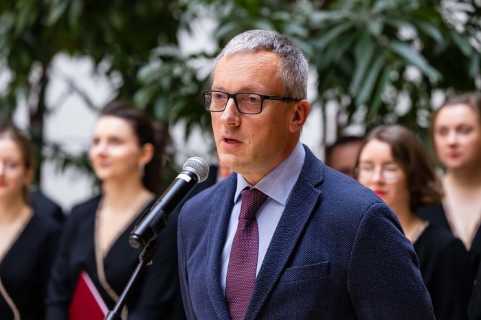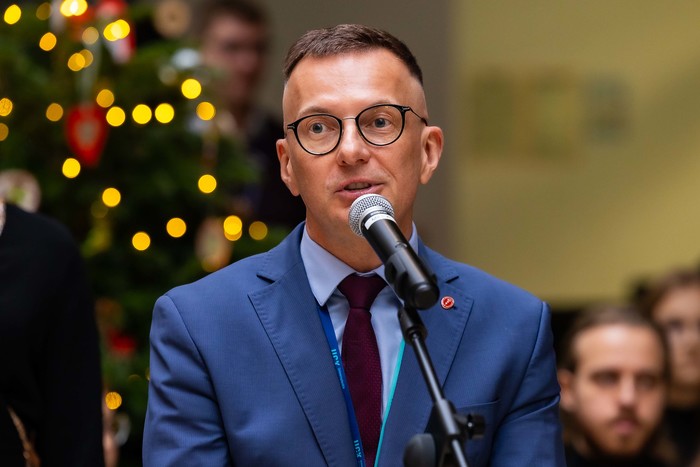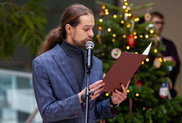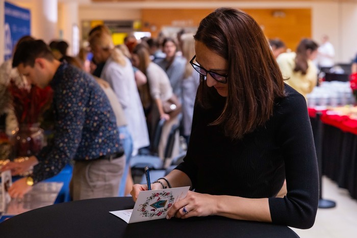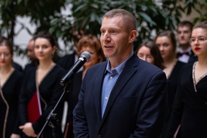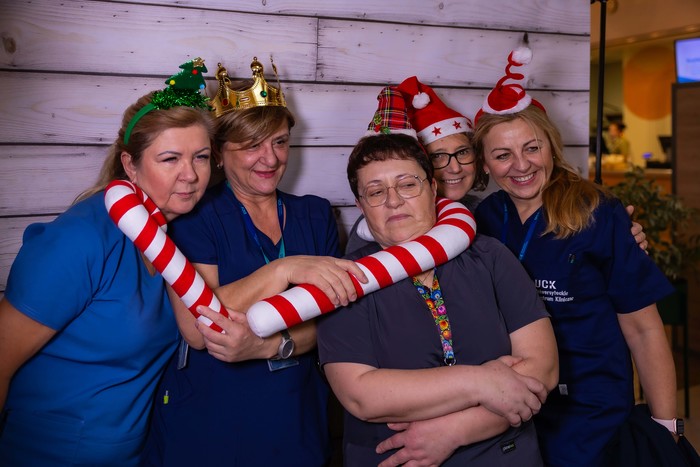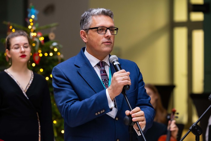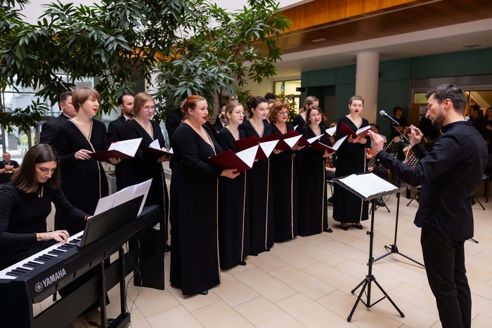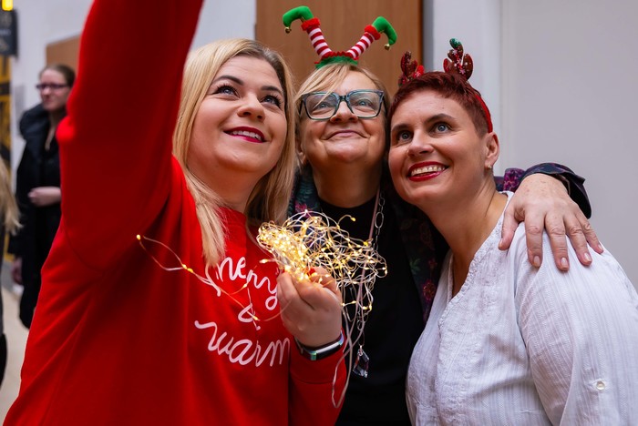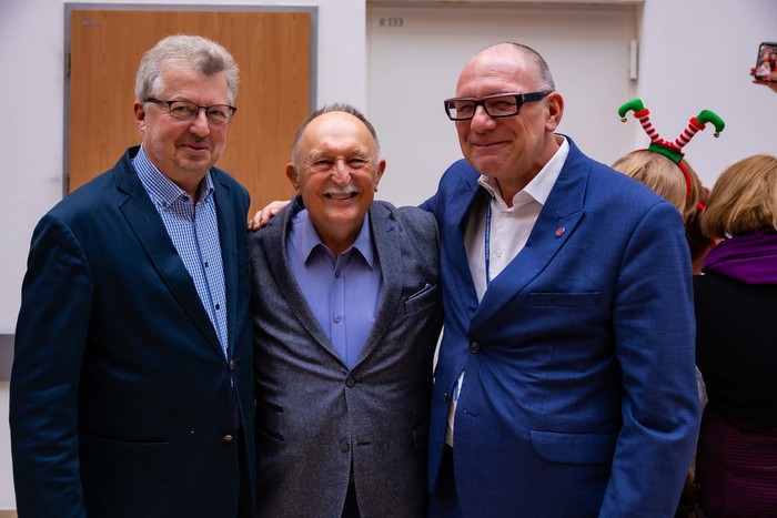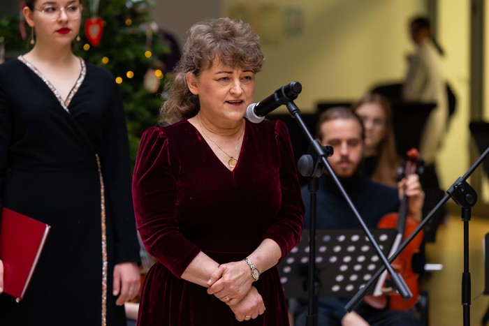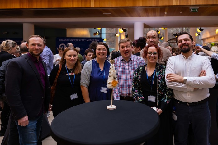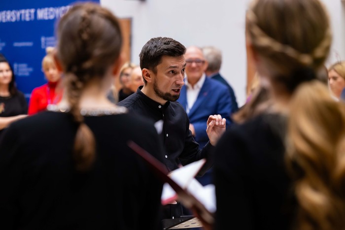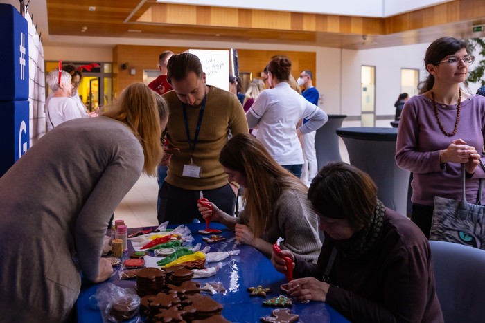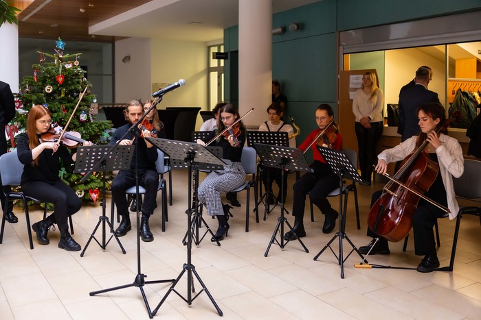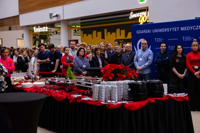 Społeczność Gdańskiego Uniwersytetu Medycznego, Uniwersyteckiego Centrum Klinicznego, Uniwersyteckiego Centrum Medycyny Morskiej i Tropikalnej, Uniwersyteckiego Centrum Stomatologicznego i Centrum Medycyny Rodzinnej spotkała się 19 grudnia 2023 r. w Centrum Medycyny Inwazyjnej, by złożyć sobie świąteczne życzenia. W imieniu władz Uczelni wszystkiego co najlepsze życzył prof. Marcin Gruchała, rektor GUMed. Życzenia przekazali także dyrektor UCK dr Jakub Kraszewski, dyrektor UCMMiT prof. Marcin Renke, prezes UCS dr Mirosława Pellowska-Piontek i prezes CMR dr Piotr Gutknecht. O oprawę muzyczną spotkania zadbały Chór i Orkiestra Gdańskiego Uniwersytetu Medycznego. Nie zabrakło kolęd w nowych aranżacjach, jak i świątecznych piosenek Jingle Bells czy White Christmas.