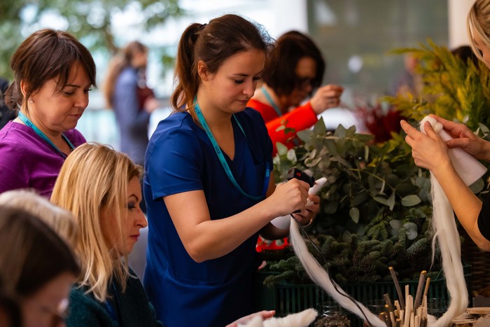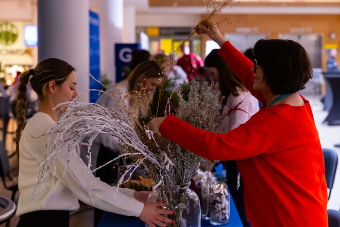 Podczas wydarzenia można było uczestniczyć w warsztatach zorganizowanych przez pracownię florystyczną. Chętni przygotowywali wianki pachnące lasem, aromatyczne świece sojowe, choinki w stylu boho i dekorowali pierniki. Ozdoby można było potem zapakować pod czujnym okiem florysty.