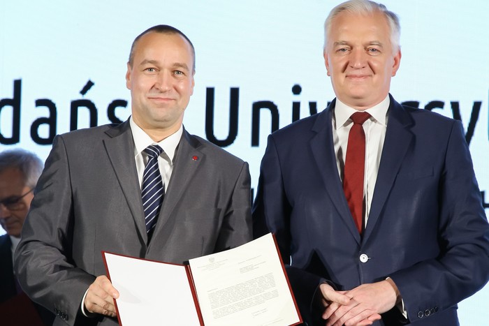 Rektor GUMed prof. Marcin Gruchała w czasie inauguracji programu IDUB (2020 r.) i prof. Tomasz Bączek, ówczesny prorektor ds. nauki, podczas ogłoszenia wyników pierwszej edycji Programu (2019 r.); na zdjęciu z byłym ministrem nauki i szkolnictwa wyższego Jarosławem Gowinem– Implementacja Programu w GUMed pozwoliła nam na wypracowanie nowych, elastycznych rozwiązań, jakie prowadzą do ciągłego rozwoju w kontekście nauki, a także, poprzez swój inwestycyjny charakter, będą również procentować w przyszłości – dodał prof. Tomasz Bączek. – Postępy, jakie mają miejsce dzięki realizacji IDUB, zostały dostrzeżone. Nie byłoby to możliwe bez zaangażowania przedstawicieli środowiska akademickiego GUMed, zarówno na co dzień, jak i podczas wizytacji ekspertów oceniających.
