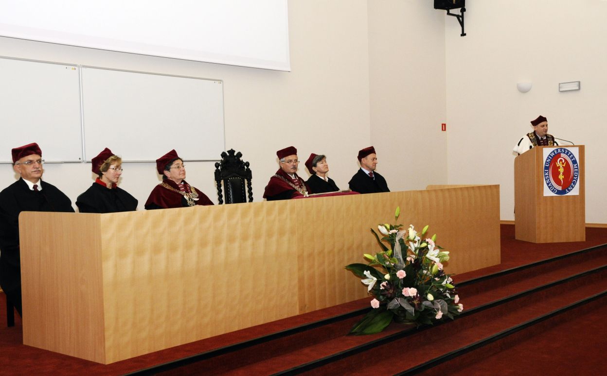 Uroczystościom przewodniczył prof. dr hab. Janusz Moryś, rektor GUMed-u, który w swoich wystąpieniach przedstawił historię oraz aktualną sytuację naszej Uczelni. Ceremonię ślubowania oraz wręczenia listów gratulacyjnych studentom, którzy uzyskali najwyższą punktację w procesie rekrutacyjnym, poprzedziły przemówienia prof. dr. hab. Janusza Sieberta, dziekana Wydziału Lekarskiego oraz prodziekanów – prof. dr hab. Barbary Kochańskiej i prof. dr. hab. Wojciecha Biernata.