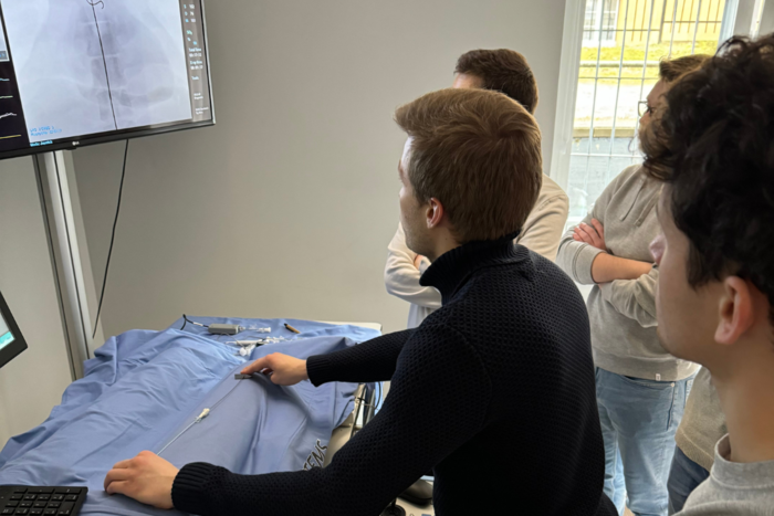 Szesnaścioro studentów kierunku lekarskiego miało okazję przejść intensywny kurs koronarografii i angioplastyki wieńcowej podczas pierwszej edycji warsztatów z kardiologii interwencyjnej zorganizowanych 23 marca br. Oprócz części teoretycznej, obejmującej omówienie anatomii tętnic wieńcowych oraz niezbędnych narzędzi pracy kardiologa interwencyjnego, uczestnicy mieli okazję samodzielnie wykonać zabiegi udrożniania zwężonych naczyń wieńcowych na symulatorze procedur wewnątrznaczyniowych dostępnym w Centrum Symulacji Sercowo-Naczyniowej GUMed. Warsztaty zostały zorganizowane przez Pawła Siuciaka, przewodniczącego SKN Hemodynamiki, które działa przy I Katedrze i Klinice Kardiologii GUMed.