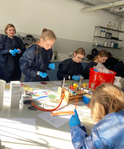 W Katedrze i Zakładzie Mikrobiologii Farmaceutycznej w dniach 11-12 kwietnia 2024 r. odbyły się warsztaty dla uczniów drugiej klasy Państwowego Liceum Sztuk Plastycznych w Gdyni im. M. Abakanowicz. Podobnie jak w poprzedniej edycji, tematem przewodnim warsztatów był BIO-ART, czyli możliwości wykorzystania różnych mikroorganizmów jako tworzywa artystycznego. Uczestnicy warsztatów mieli możliwość doświadczenia efektów spotkania sztuki z biologią.