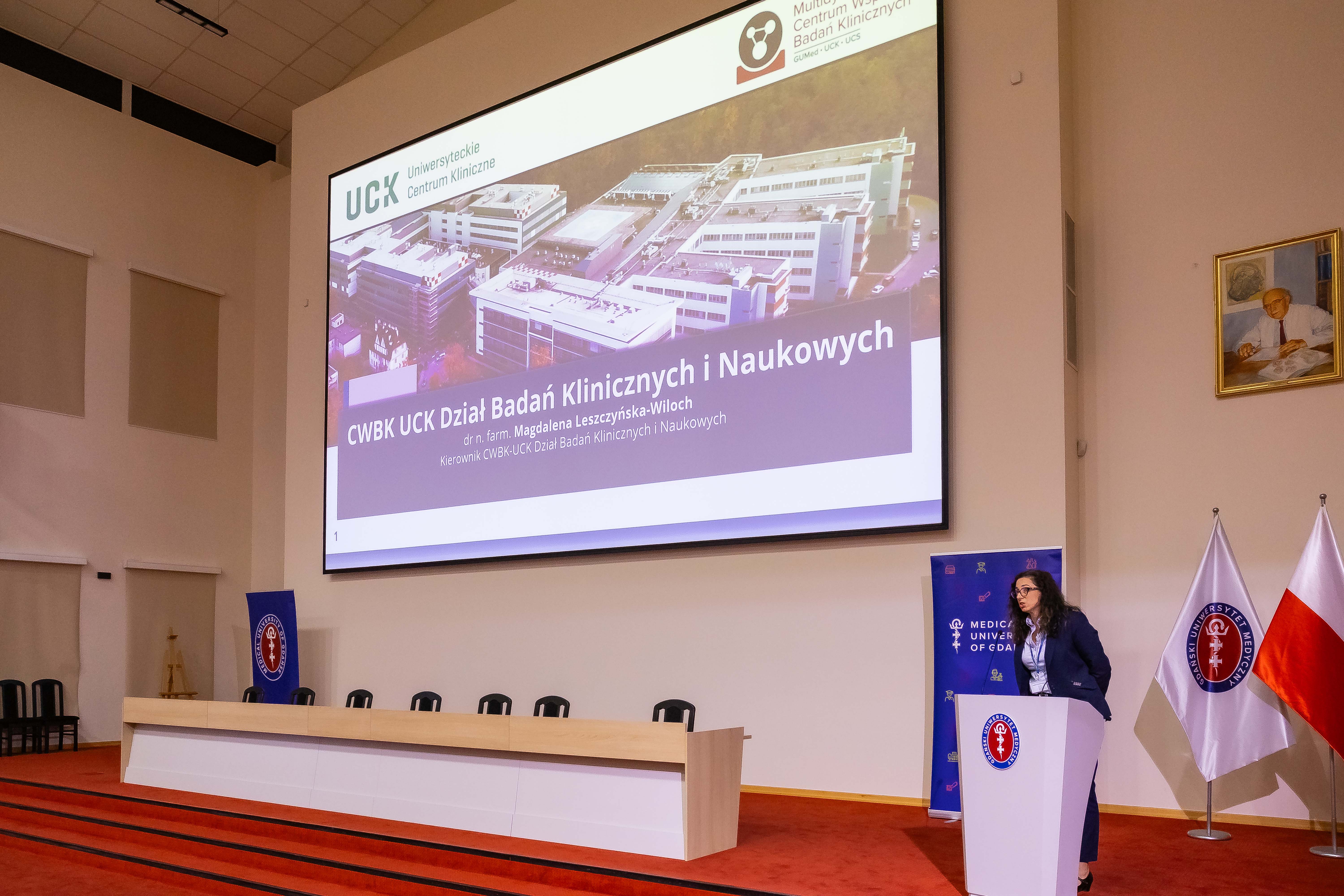 Osiągnięcia CWBK UCK omówiła dr Magdalena Leszczyńska-Wiloch, kierownik Działu Badań Klinicznych i Naukowych, a o działalności Ośrodka Badań Klinicznych Wczesnych Faz opowiedziała kierująca nim dr Zofia Specht-Szwoch.