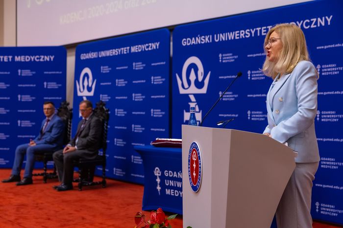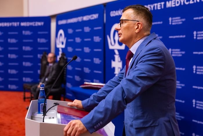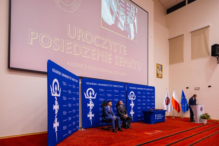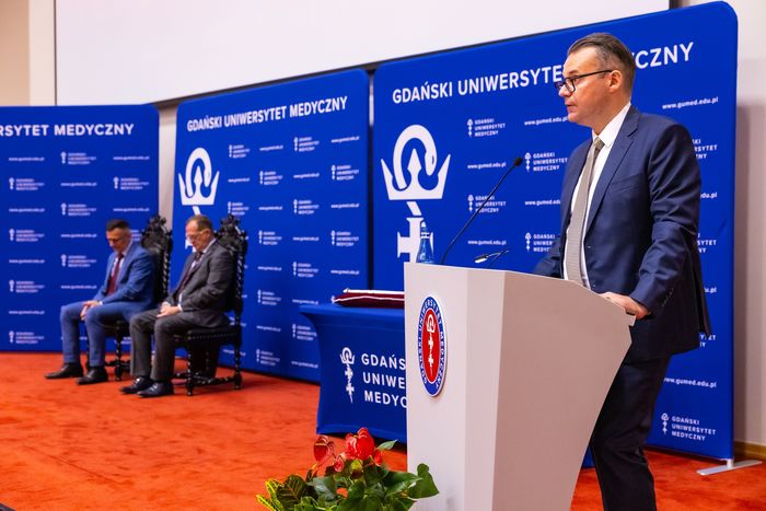 Wydarzenie rozpoczęło się od podziękowań członkom Kolegium Rektorskiego, Senatu i Rady Uczelni kadencji 2020-2024 oraz 2024-2028. Jak podkreślił w swoim przemówieniu ustępujący rektor prof. Marcin Gruchała ważne było dla niego szczególnie wsparcie i zaufanie Senatorów. – Na Senacie dyskutowane były trudne nieraz decyzje, a płynąca z niego mądrość i rozwaga były dla mnie bardzo ważne – mówił prof. Marcin Gruchała, ustępujący rektor. – Chciałbym również podziękować członkom Rady Uczelni za mądrość życiową i rozsądek w ocenie sytuacji oraz za reprezentowanie GUMed w roli jego ambasadorów. Życzę także Panu Rektorowi, nowym władzom rektorskim i Senatowi, który rozpoczyna swoją kadencję, wszelkiej pomyślności.