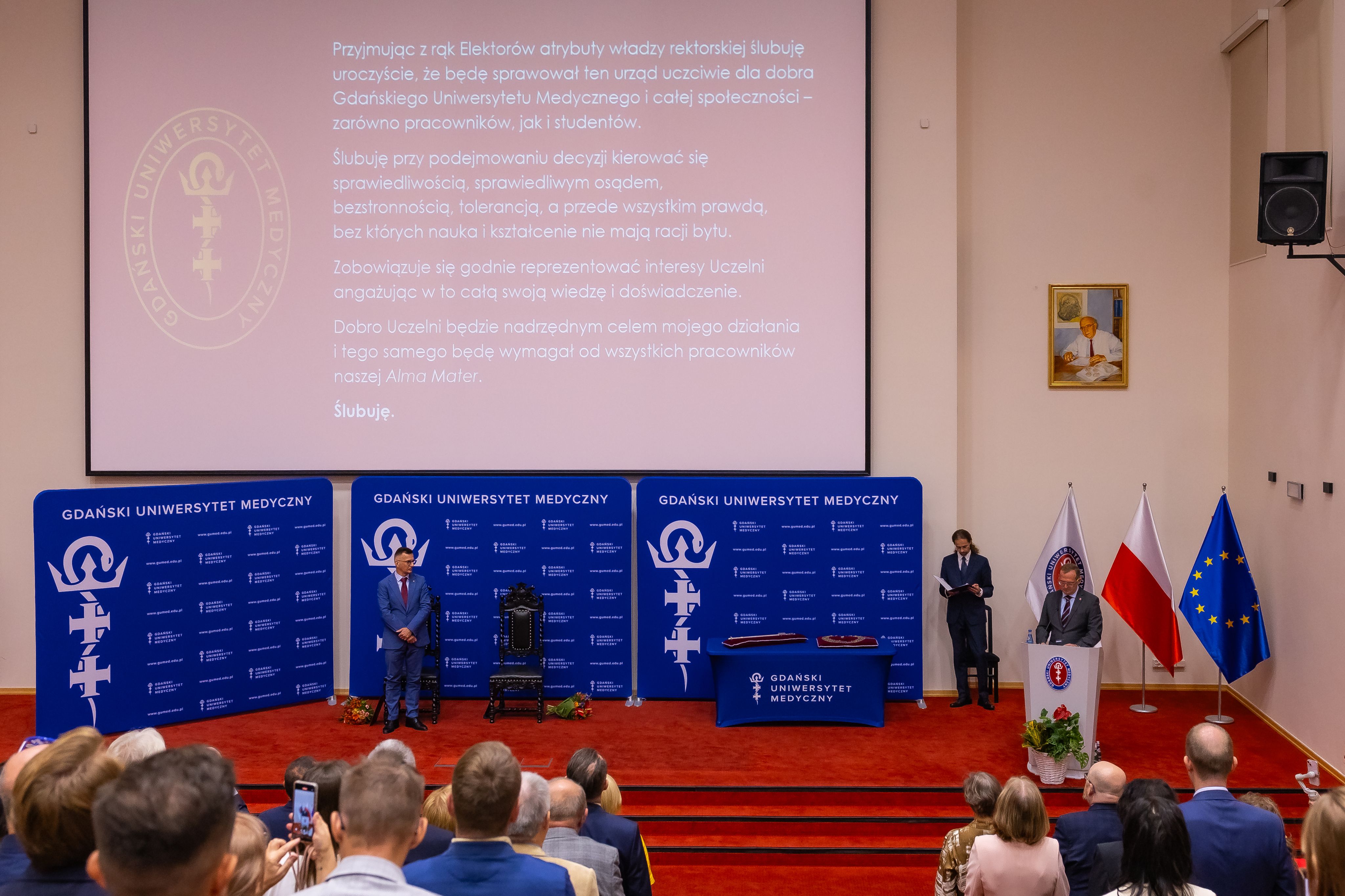 Po przemówieniu prof. E. Szurowskiej protokół z wyborów rektora, które odbyły się 24 kwietnia 2024 r. odczytał prof. Wiesław Cubała, przewodniczący Kolegium Elektorów. Następnie rektor prof. Michał Markuszewski złożył ślubowanie, w którym zobowiązał się m.in. że przy podejmowaniu decyzji kierować się będzie sprawiedliwością, sprawiedliwym osądem, bezstronnością, tolerancją, a przede wszystkim prawdą, bez których nauka i kształcenie nie mają racji bytu.