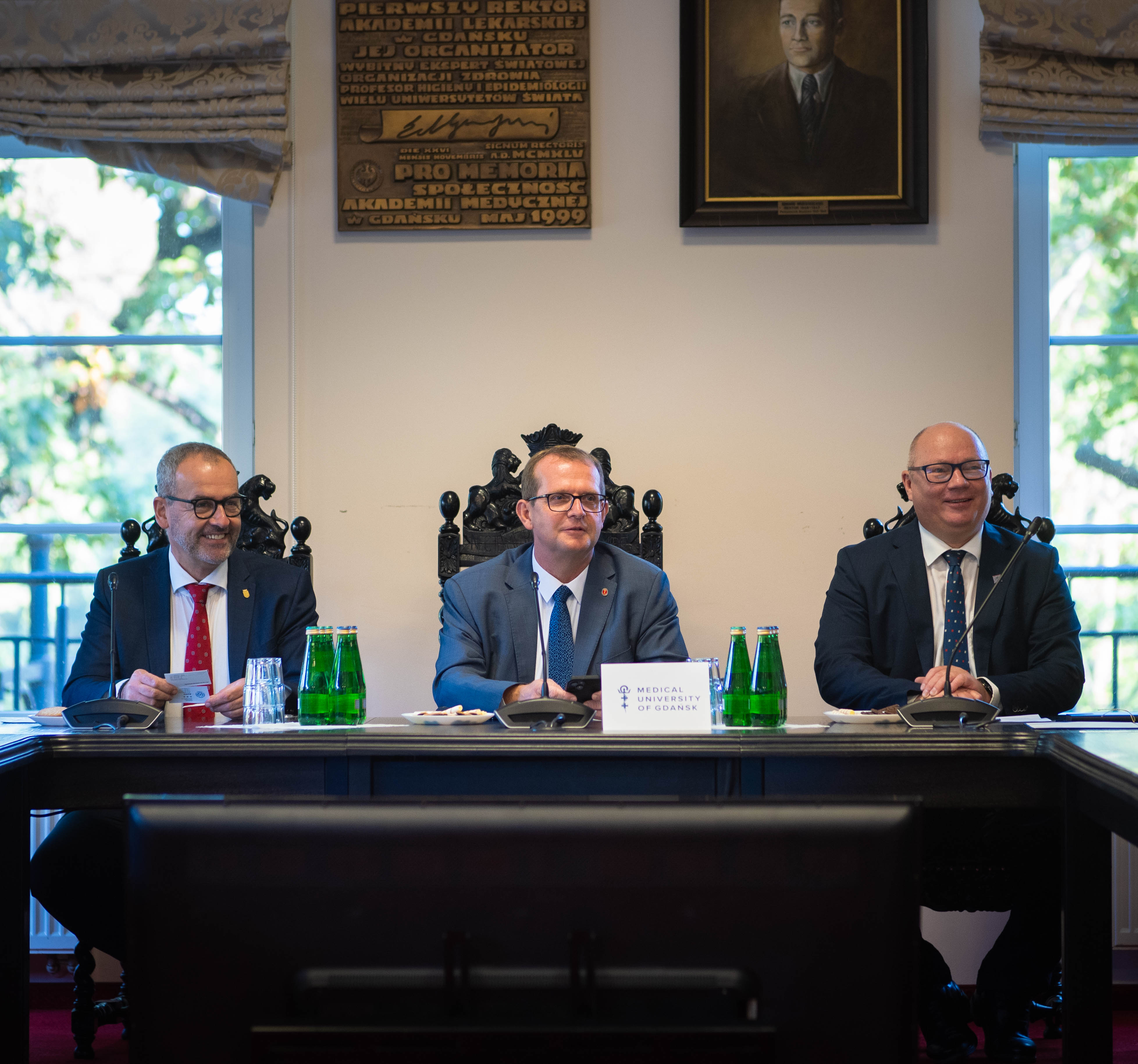 W spotkaniu wzięli udział również z Gdańskiego Uniwersytetu Medycznego – prof. Anna Żaczek, prorektor ds. rozwoju i współpracy, dr hab. Michał Hoffman, prorektor ds. klinicznych, prof. Tomasz Bączek, pełnomocnik Rektora ds. Programu „Inicjatywa Doskonałości – Uczelnia Badawcza” i Olga Hofman, kierownik Działu Obsługi Programu „Inicjatywa Doskonałości – Uczelnia Badawcza”.