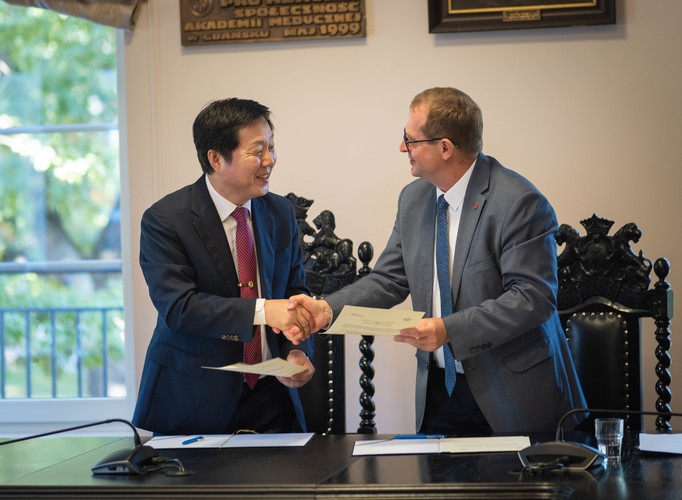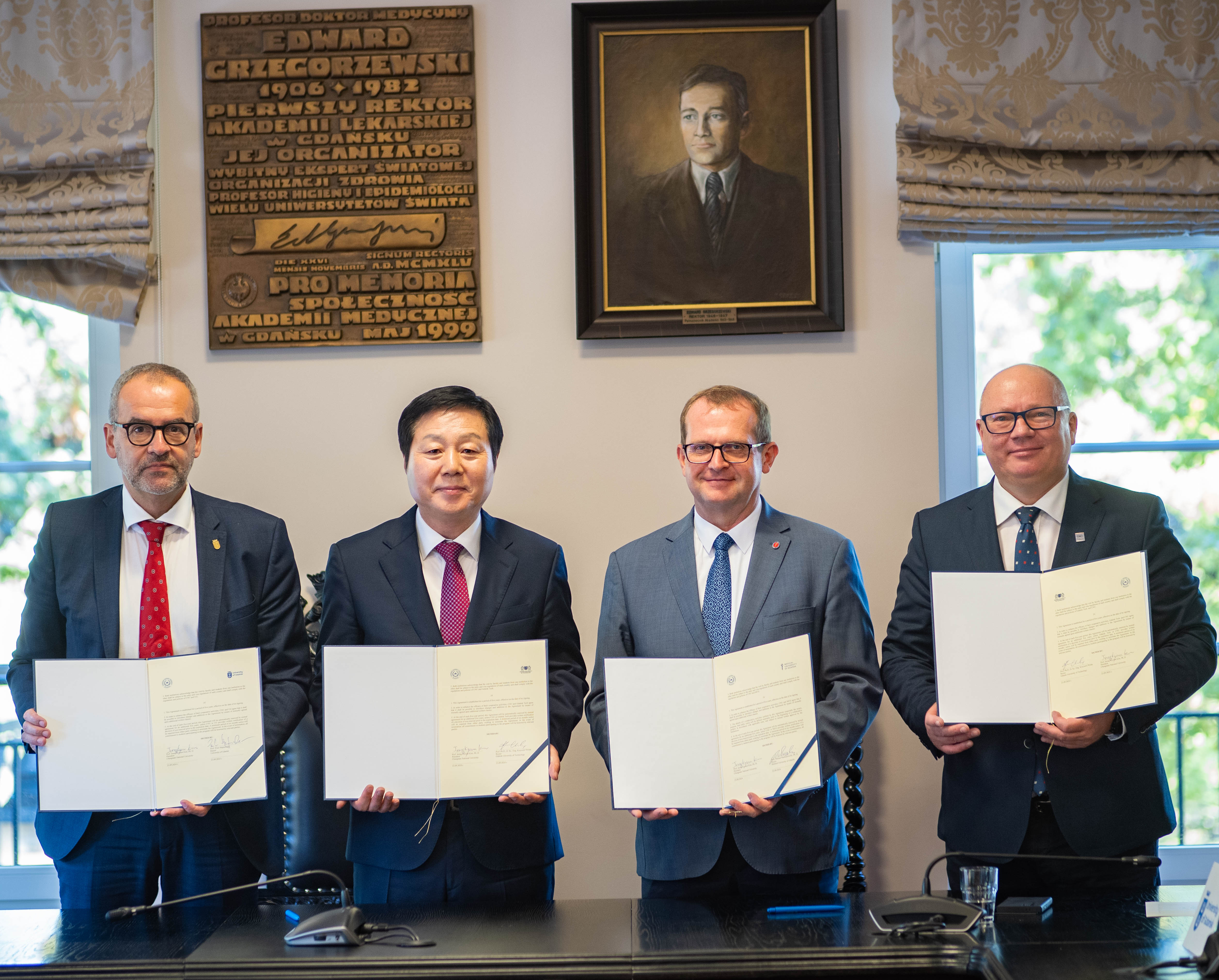 Pierwsza część spotkania zakończyła się podpisaniem porozumień o współpracy pomiędzy uczelniami tworzącymi Związek Uczelni im. Daniela Fahrenheita a Chungnam National University. Następnie goście zostali oprowadzeni po kampusach uczelnianych GUMed, PG i UG. W Uniwersyteckim Centrum Klinicznym dyrektor Jakub Kraszewski i zastępca dyrektora Adam Sudoł, w towarzystwie prorektora ds. klinicznych GUMed dr. hab. Michała Hoffmanna pokazali Ośrodek Badań Klinicznych Wczesnych Faz, o którym opowiedzieli dr Zofia Specht-Szwoch i prof. Rafał Dziadziuszko.