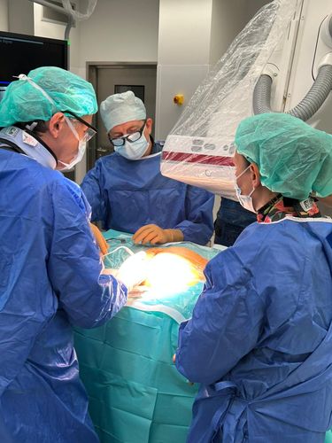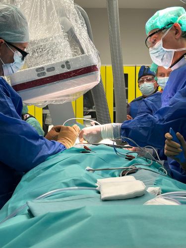 Zabieg przeprowadzony był w Pracowni Elektrofizjologii i Elektroterapii Serca przez zespół kierowany przez dr. hab. n. med. Macieja Kempę. W skład zespołu wszedł też dr n. med. Szymon Budrejko z Kliniki Kardiologii i Elektroterapii Serca oraz dr n. med. Magdalena Kołaczkowska z Kliniki Kardiochirurgii. Nieocenionym wsparciem okazała się Joanna Prządka, instrumentariuszka oraz mgr Dorota Mudzińska, technik elektroradiologii. Znieczulenie ogólne prowadzone było przez lek. Jana Stefaniaka. Nad prawidłowym i bezpiecznym wykonaniem zabiegu czuwał zaproszony gość, prof. dr hab. n. med. Maciej Sterliński, międzynarodowy ekspert w stosowaniu tej metody leczenia.